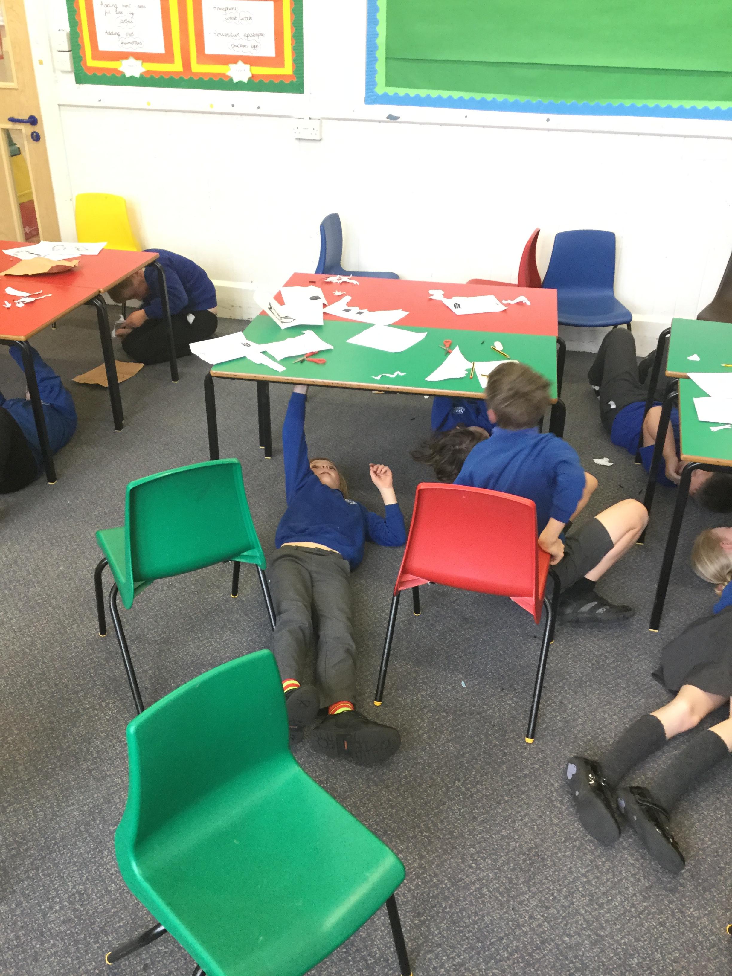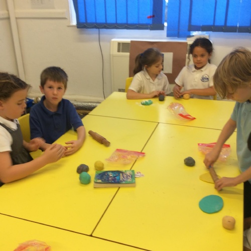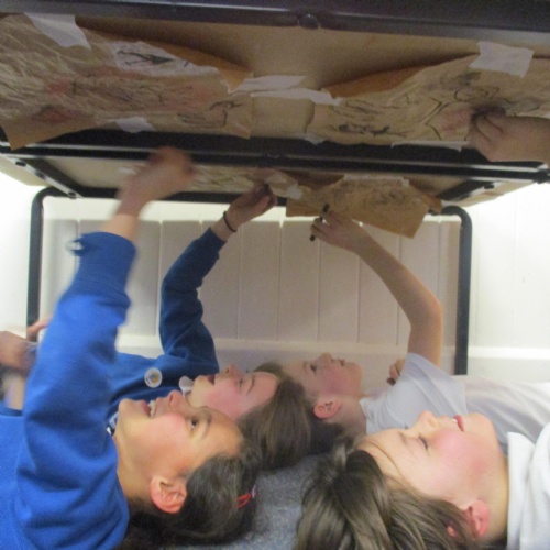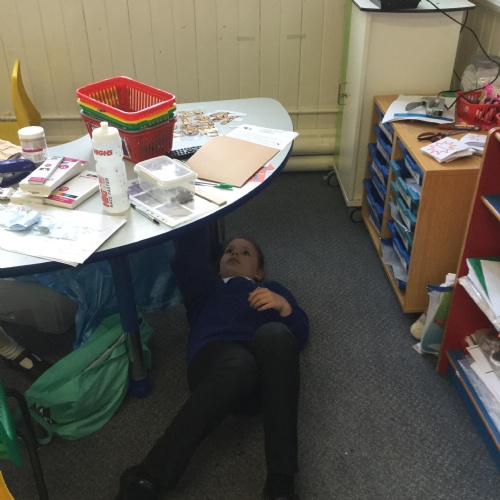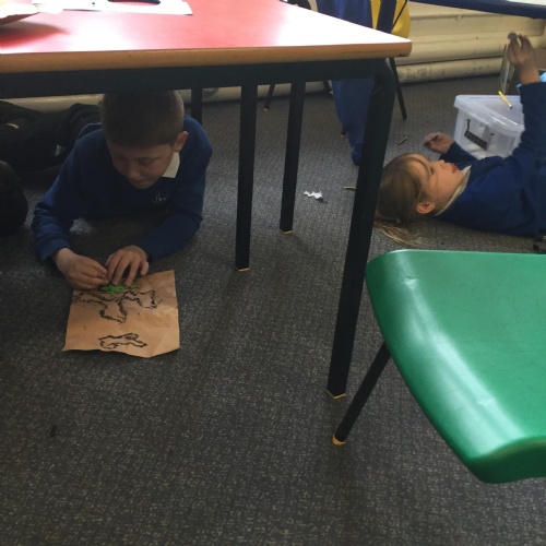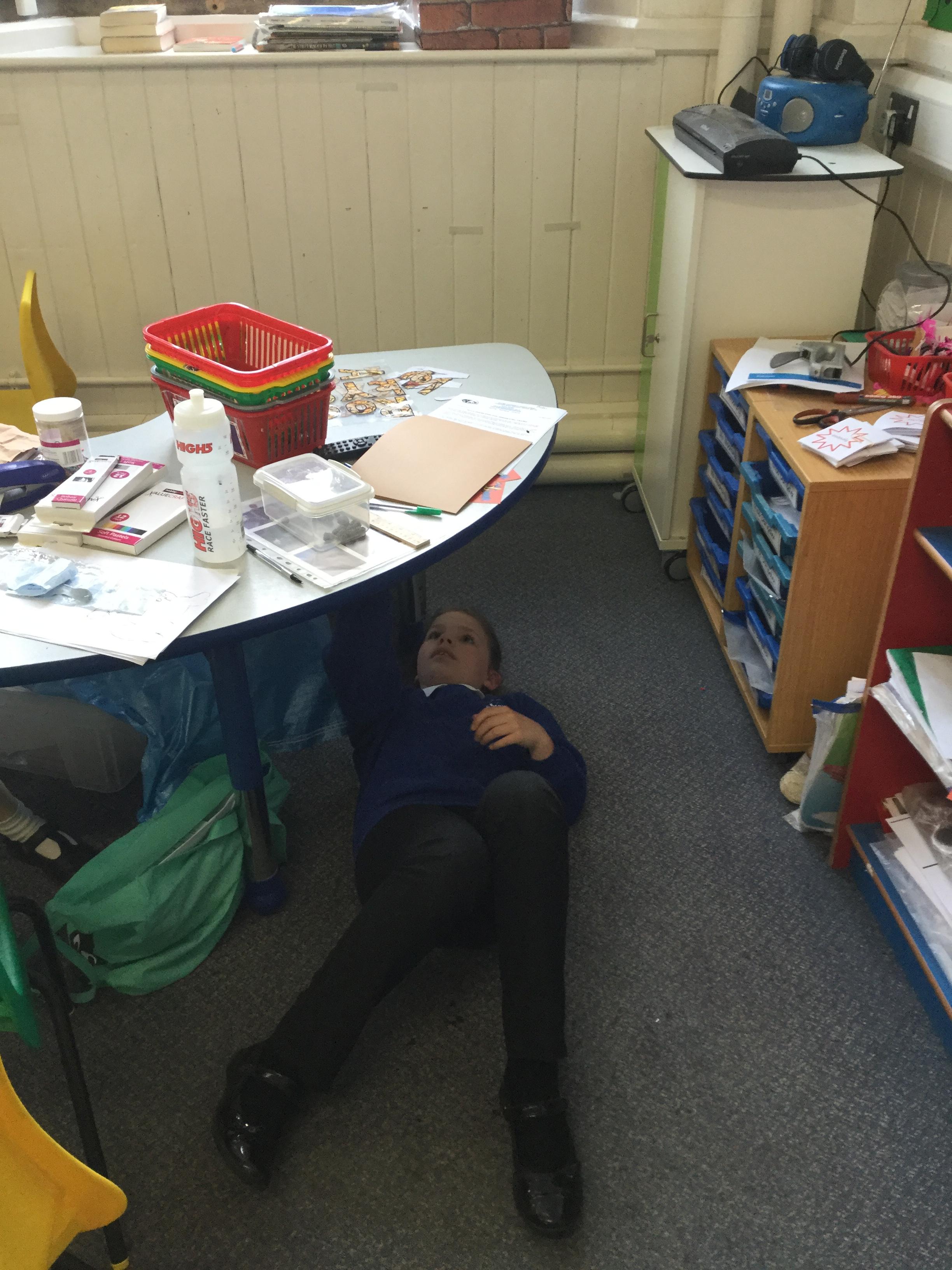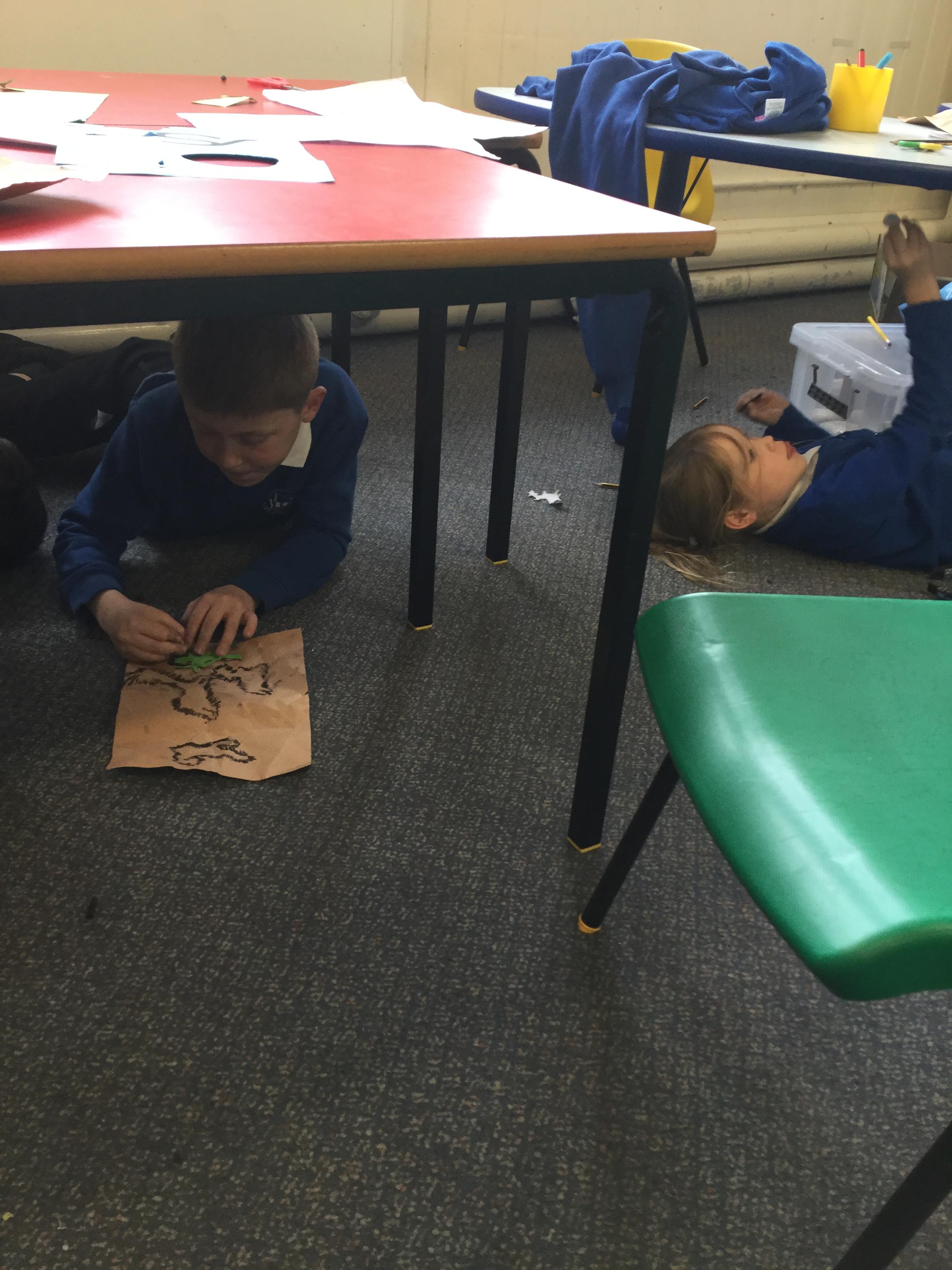 With Mr Moorcroft on Tuesday morning we had a brief look at the Stone Age (cave drawings, tools and weapons from this period). After looking at these we then had a chance to make cave drawings that will go on the class display(we went underneath the tables to see what it would have been like to try and draw on a cave wall). Then in the afternoon with Miss Dempster we listened to and learnt our own version of We Will Rock You which we all thoroughly enjoyed.