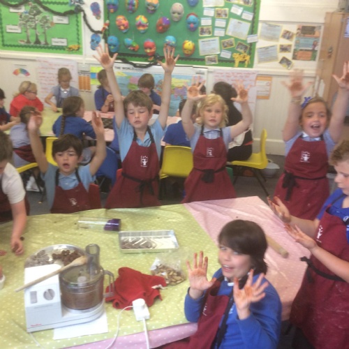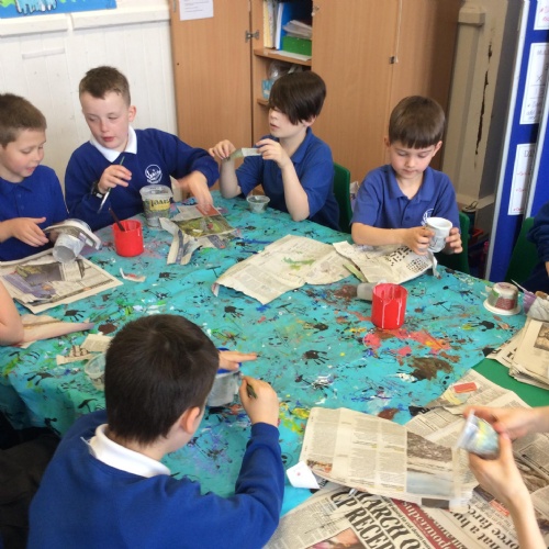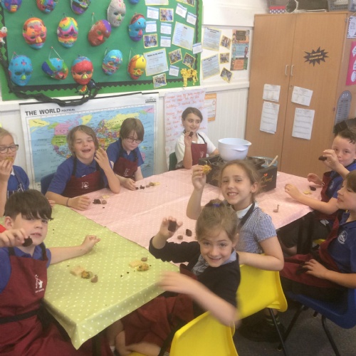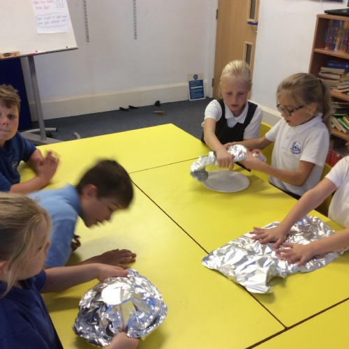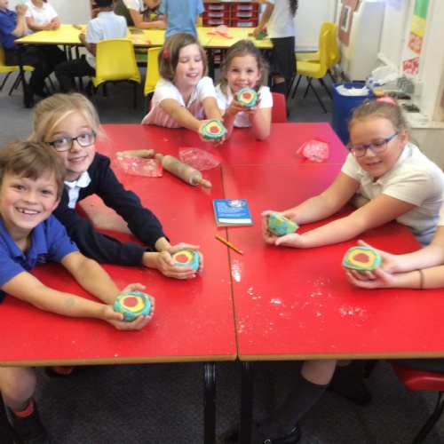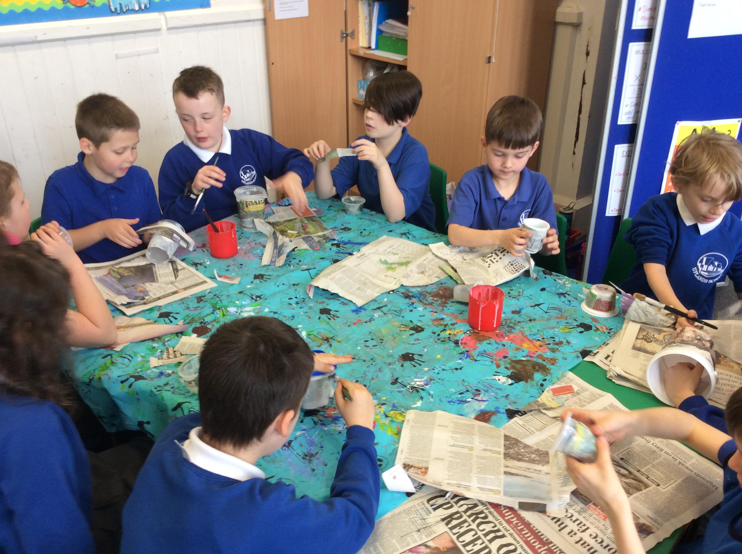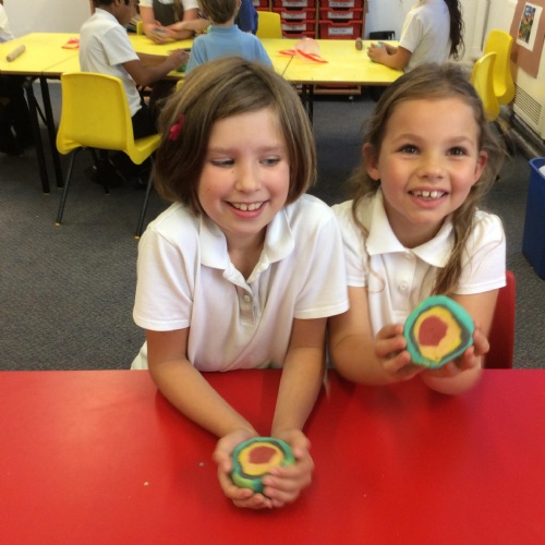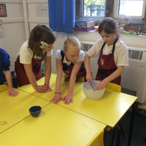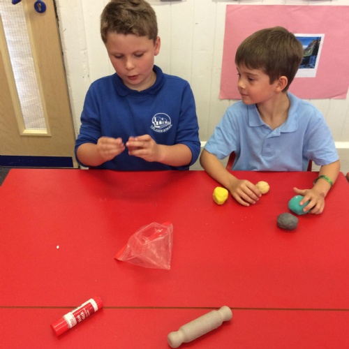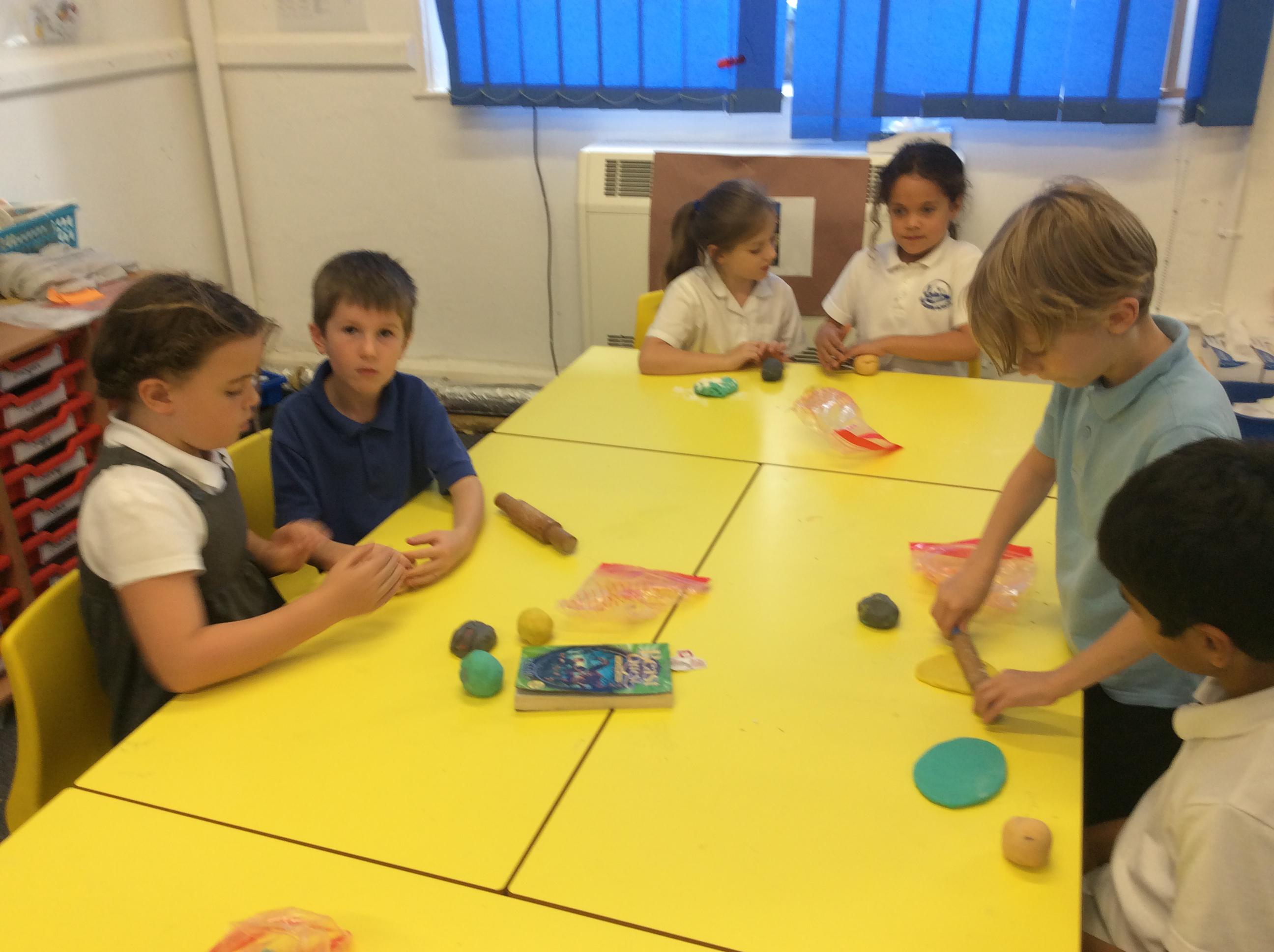 With Mr Moorcroft on Tuesday morning we had a brief look at the Stone Age (cave drawings, tools and weapons from this period). After looking at these we then had a chance to make cave drawings that will go on the class display(we went underneath the tables to see what it would have been like to try and draw on a cave wall). Then in the afternoon with Miss Dempster we listened to and learnt our own version of We Will Rock You which we all thoroughly enjoyed.
