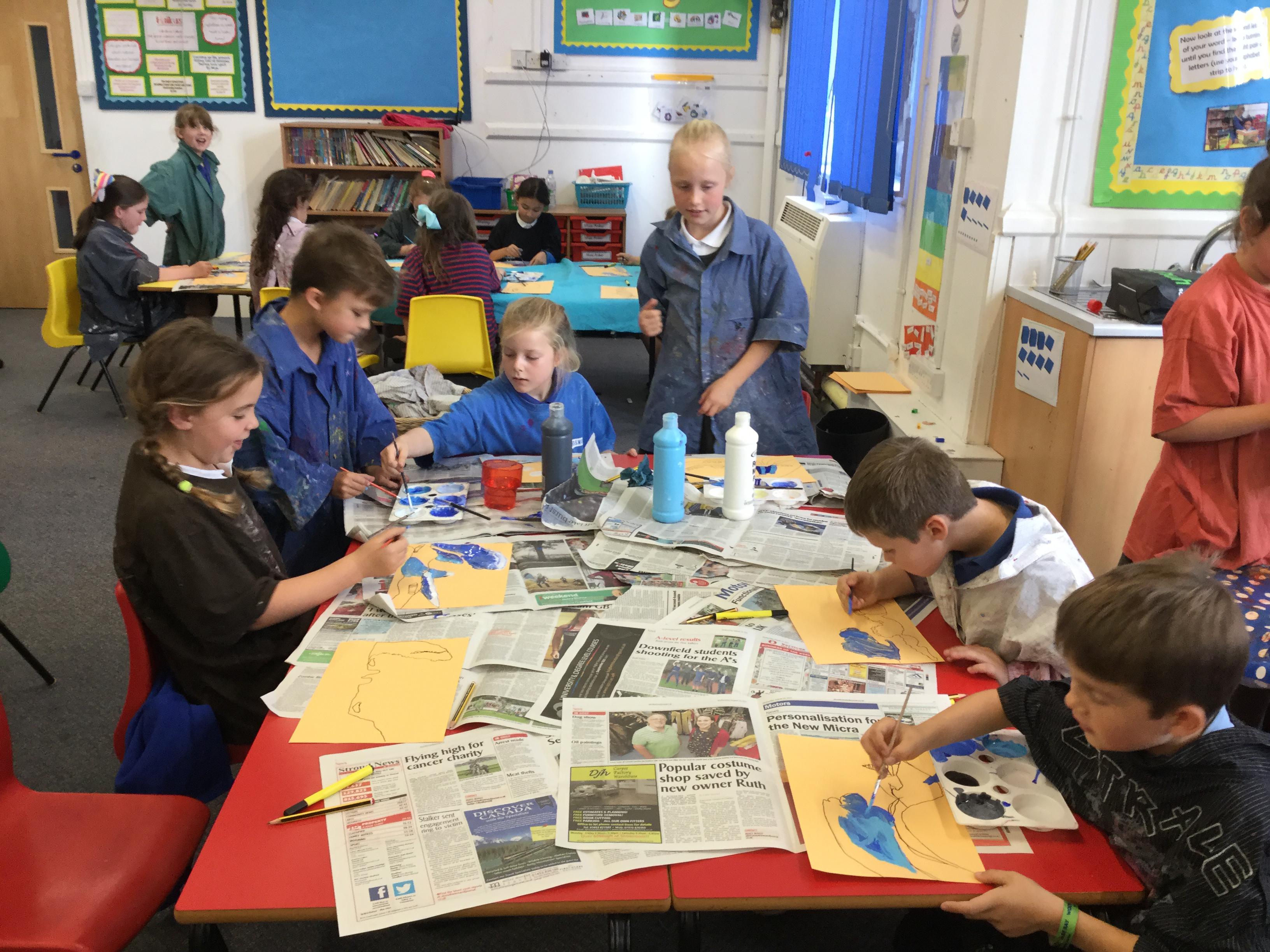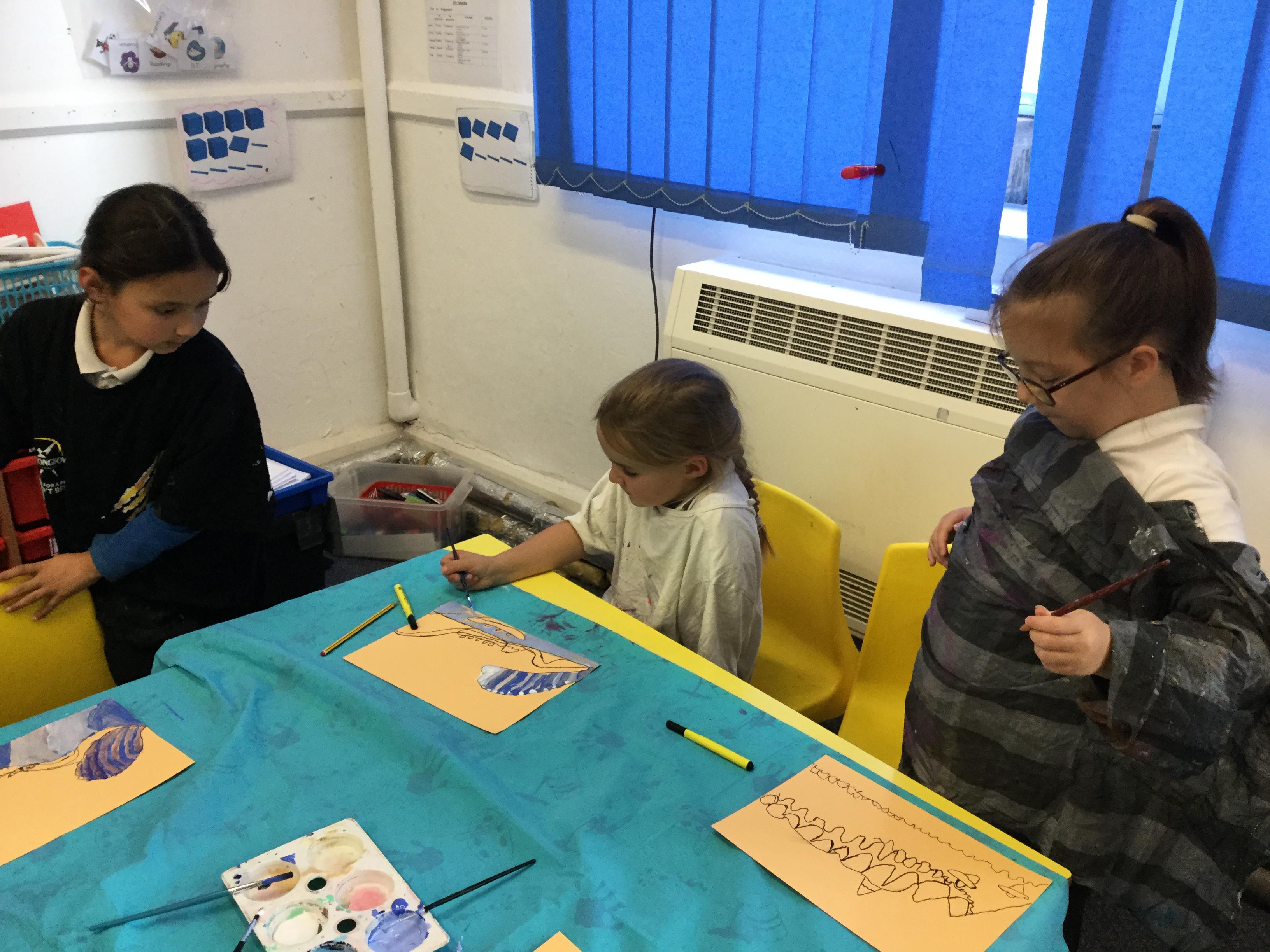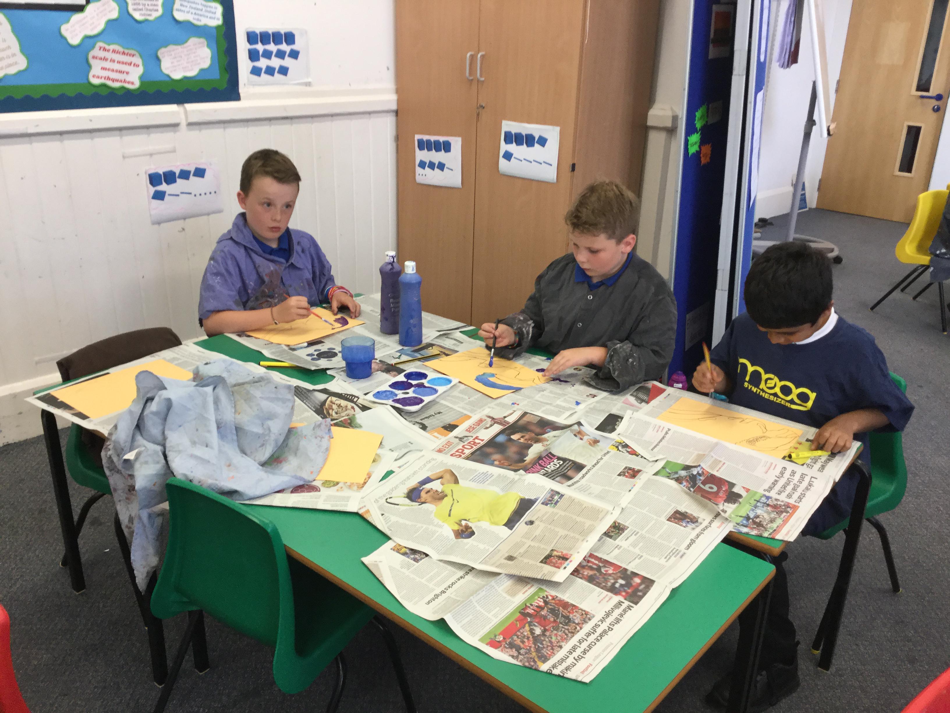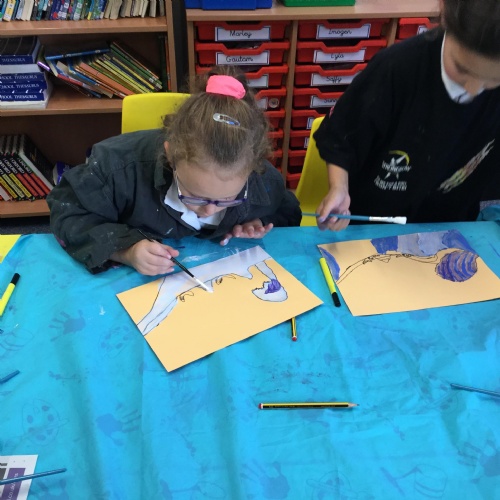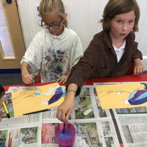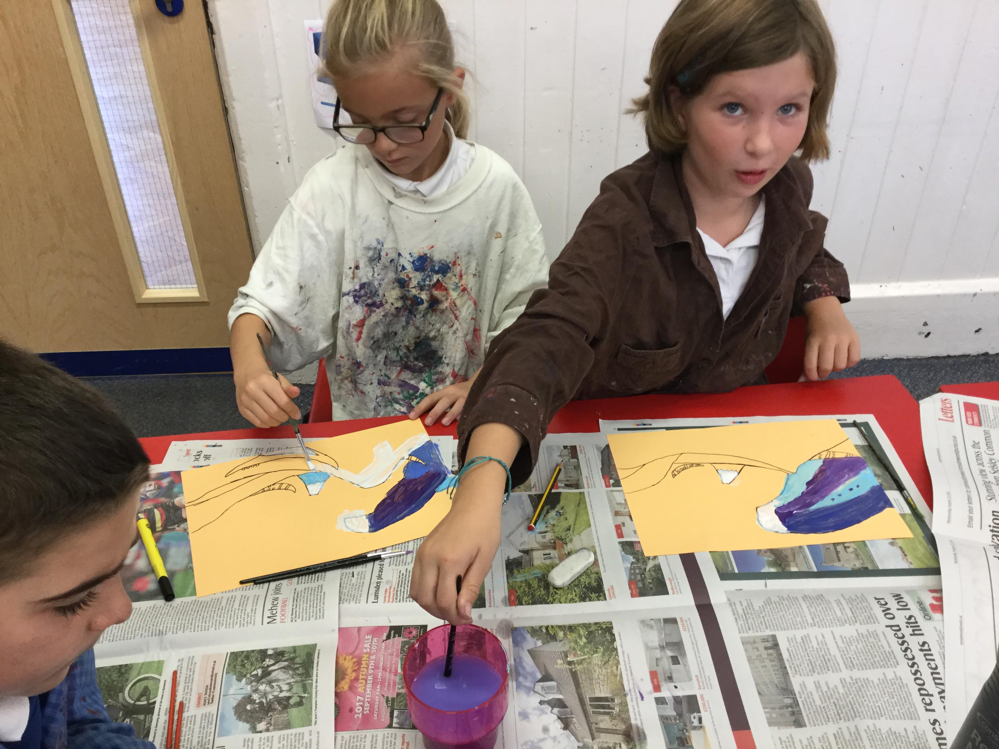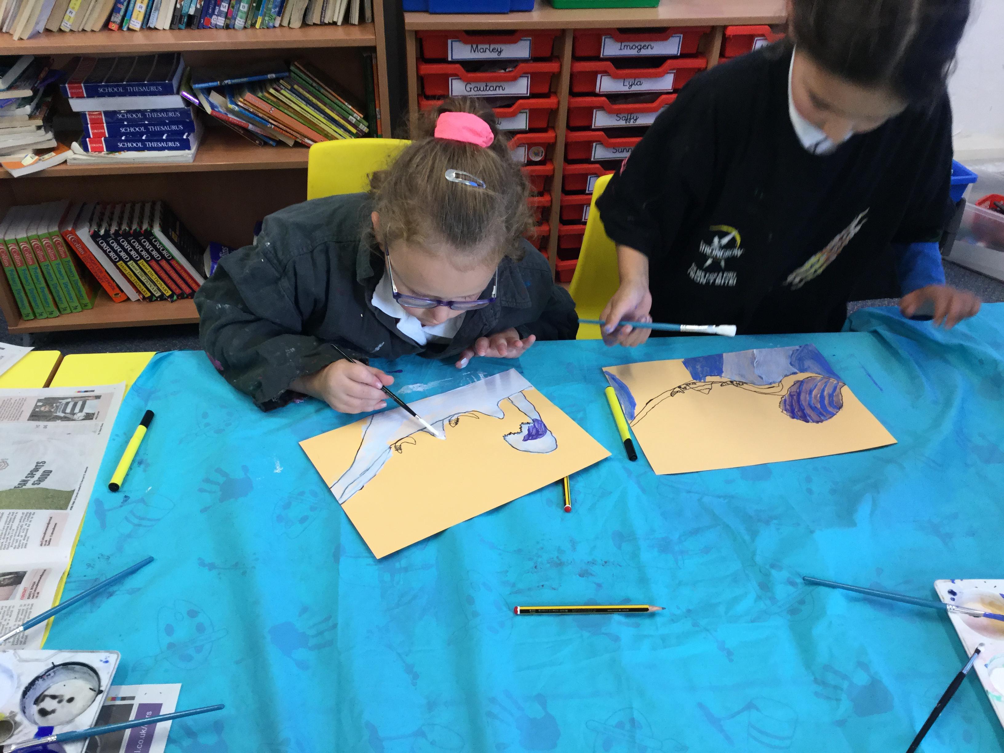 In Art, the children had the chance to finish off their paintings that were inspired by the work of Romero Britto. They finished them off by going over the lines in black pen to define each section of their painting.