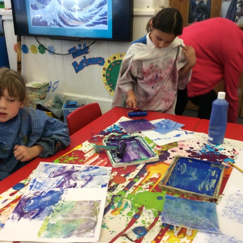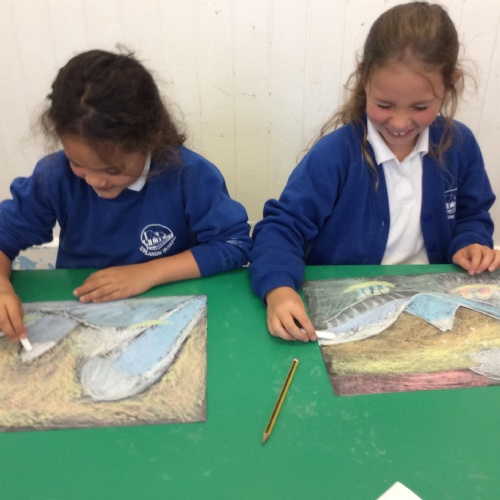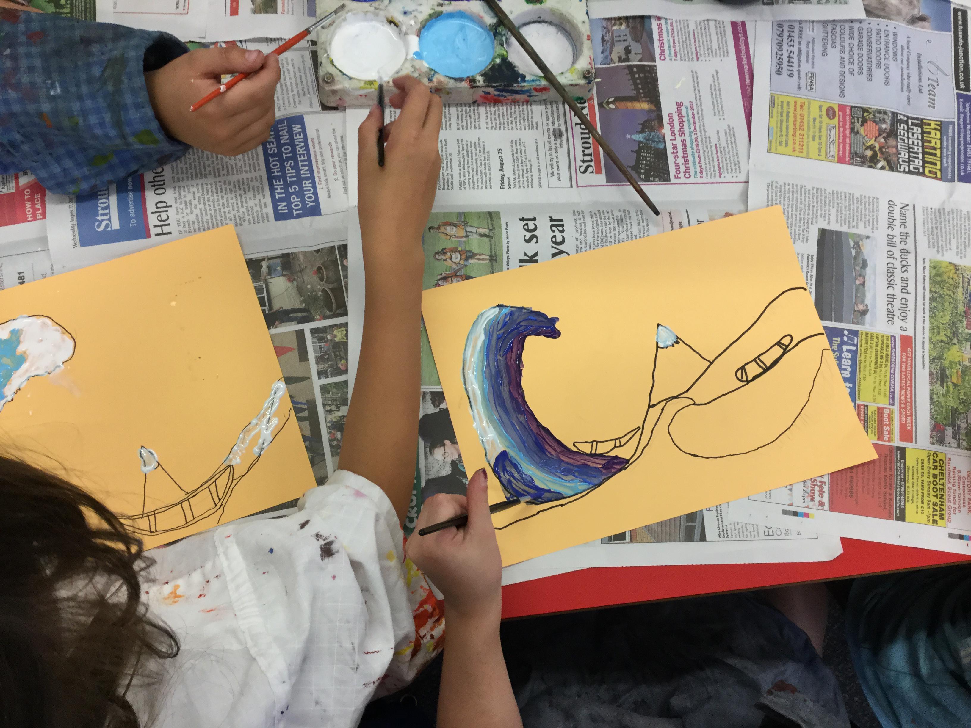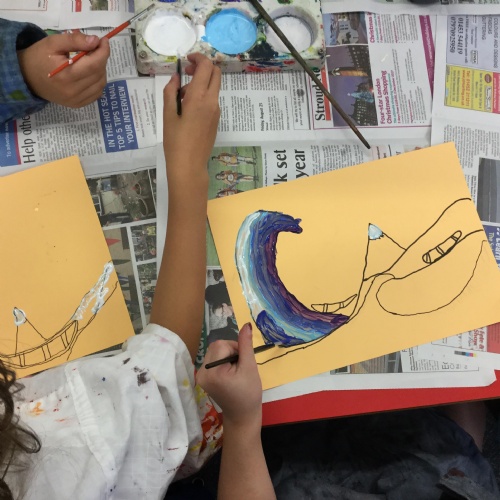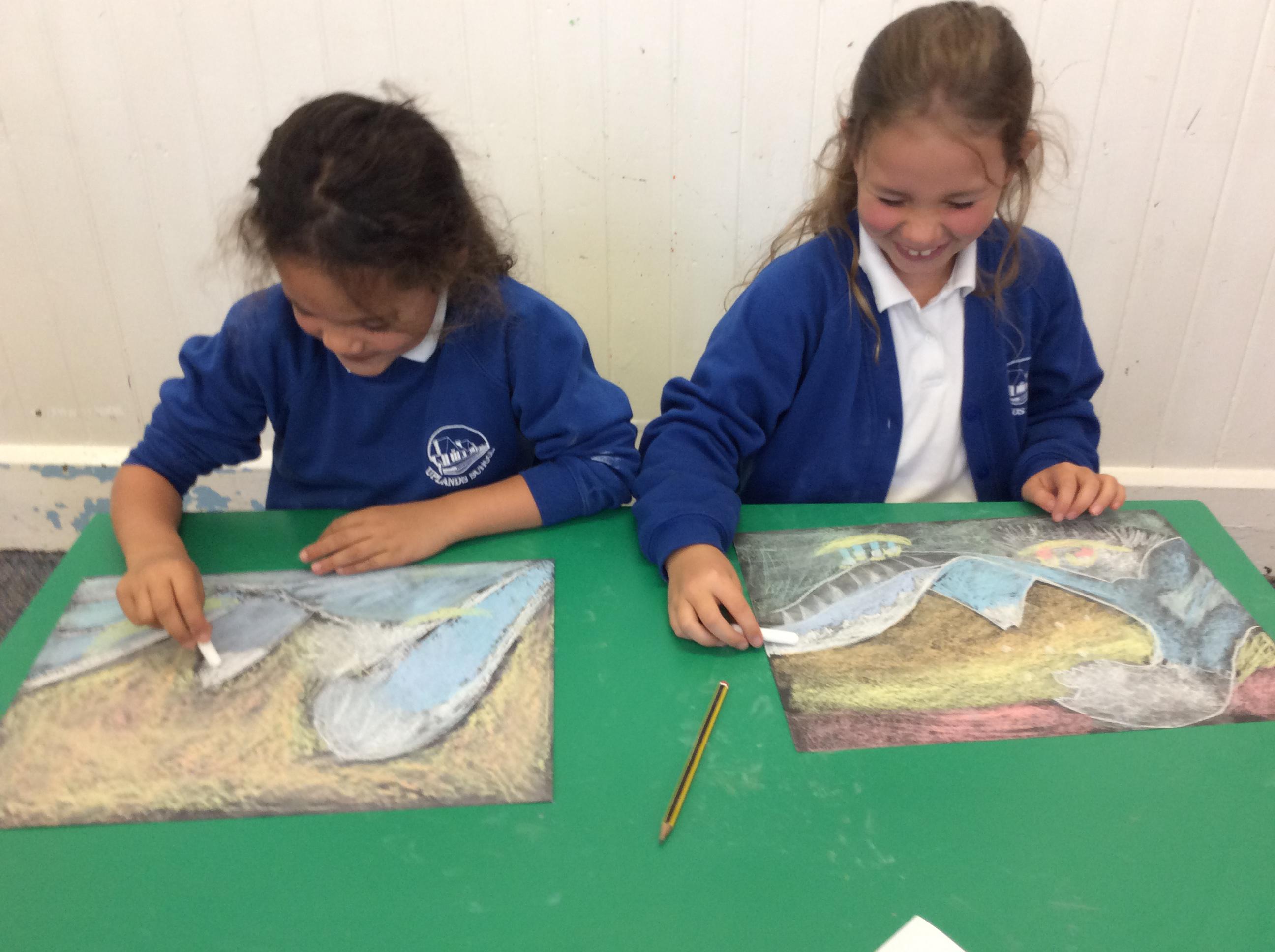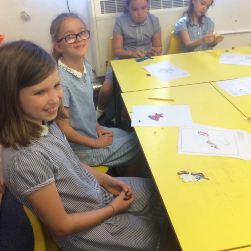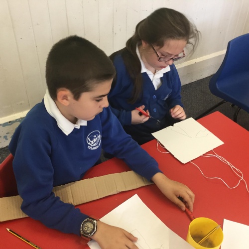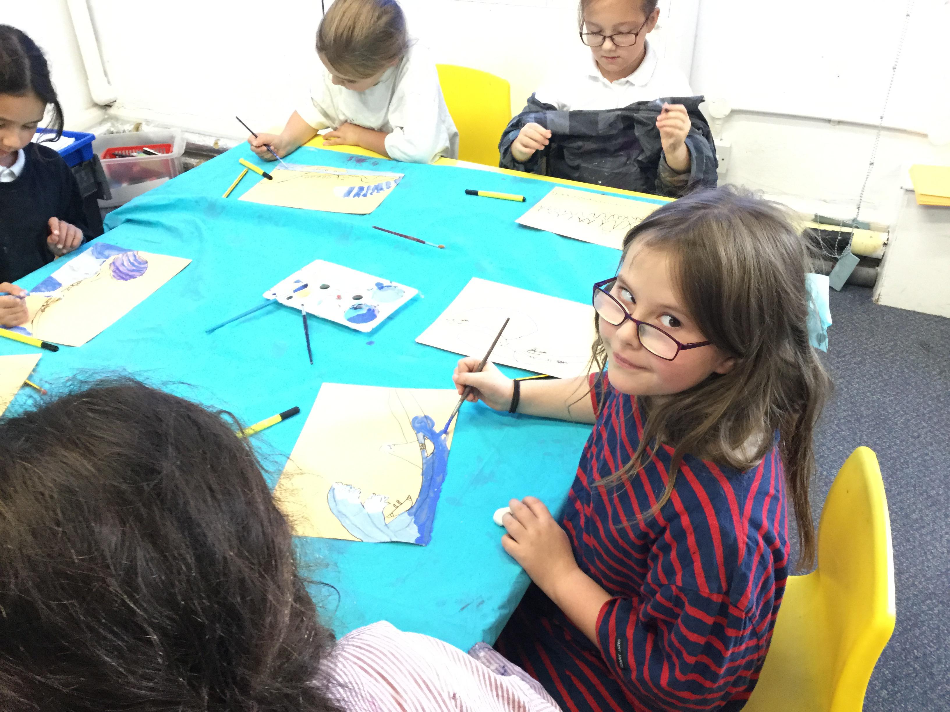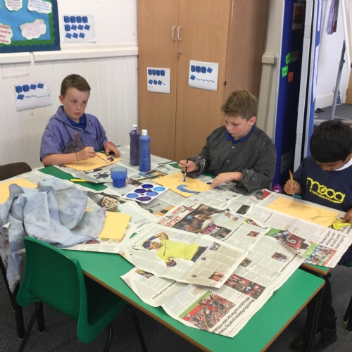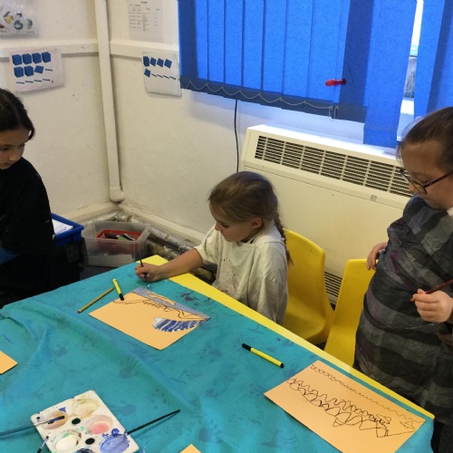 In Art, the children had the chance to finish off their paintings that were inspired by the work of Romero Britto. They finished them off by going over the lines in black pen to define each section of their painting.
