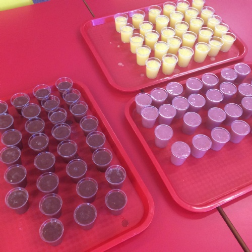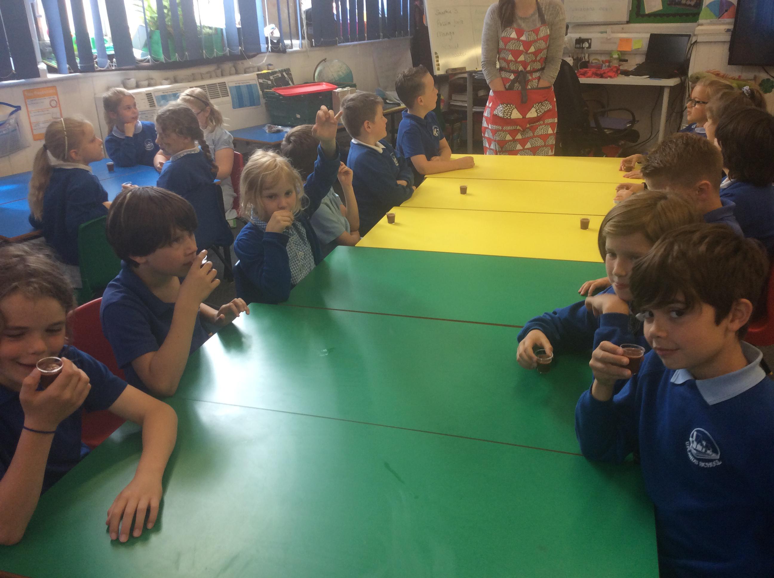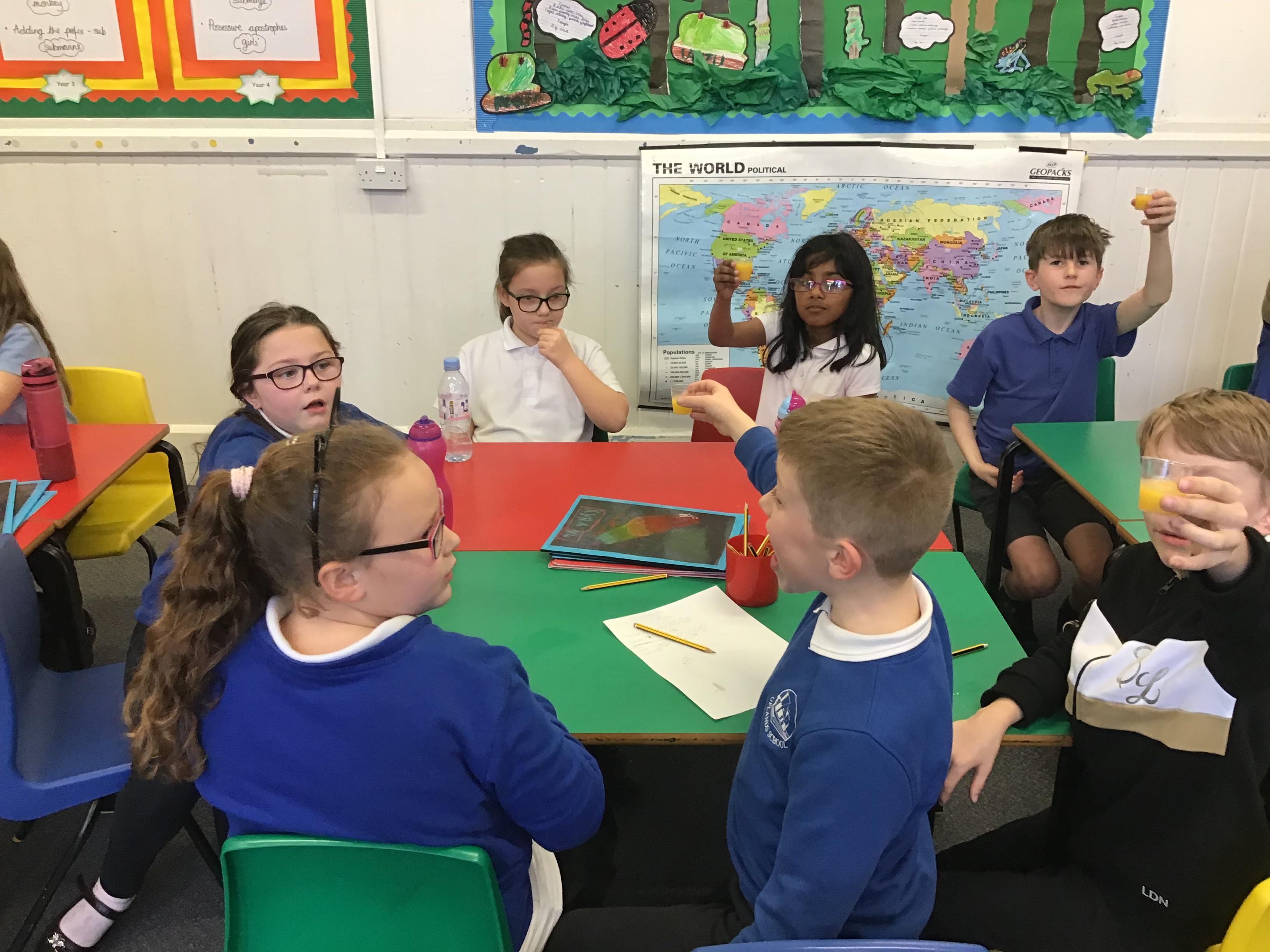 In Topic we were trying different flavoured fruit juices to help us think of what fruits would work together so we can create a smoothie. Some of the juices tasted delicious but some of them very disgusting.