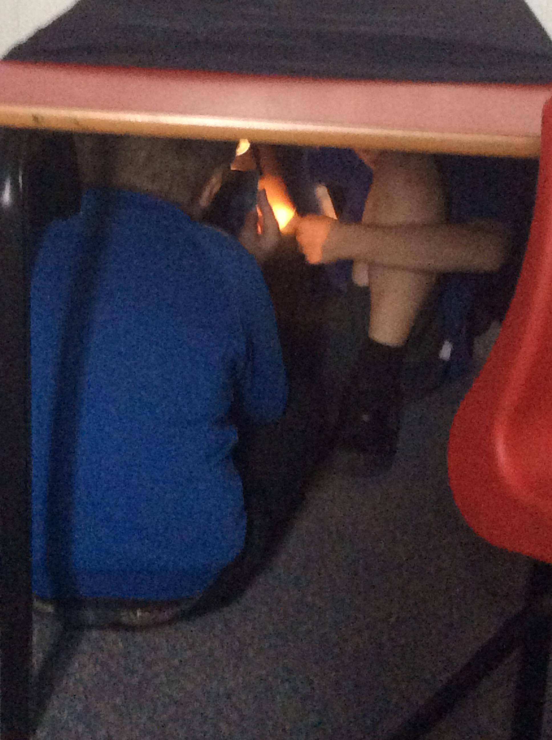 - Next we put a lined piece of paper under a normal piece of paper so we could write on the lines.