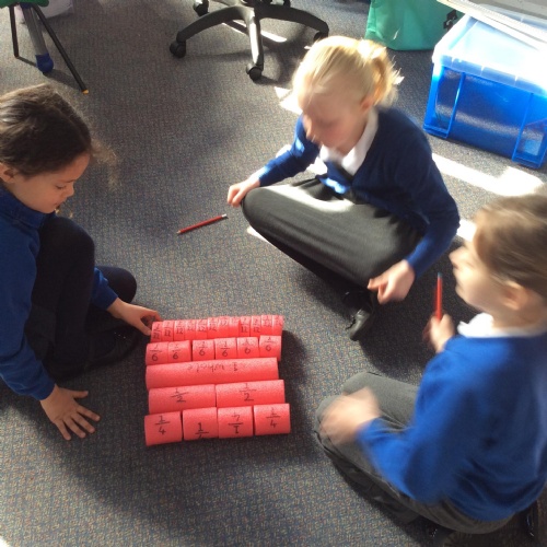 In Maths, we continued with our fraction work with Miss Dempster with the year 4’s learning about decimal equivalents for fractions and dividing by 10 and 100 and the year 3’s were ordering and comparing fractions.
