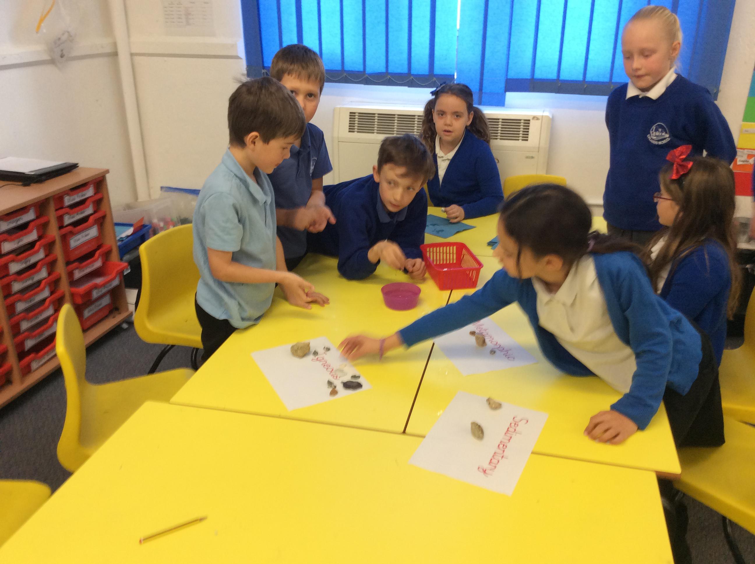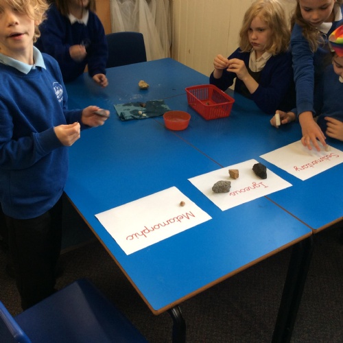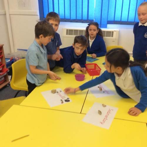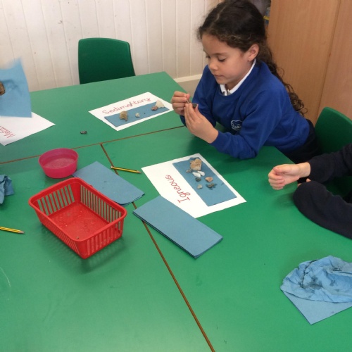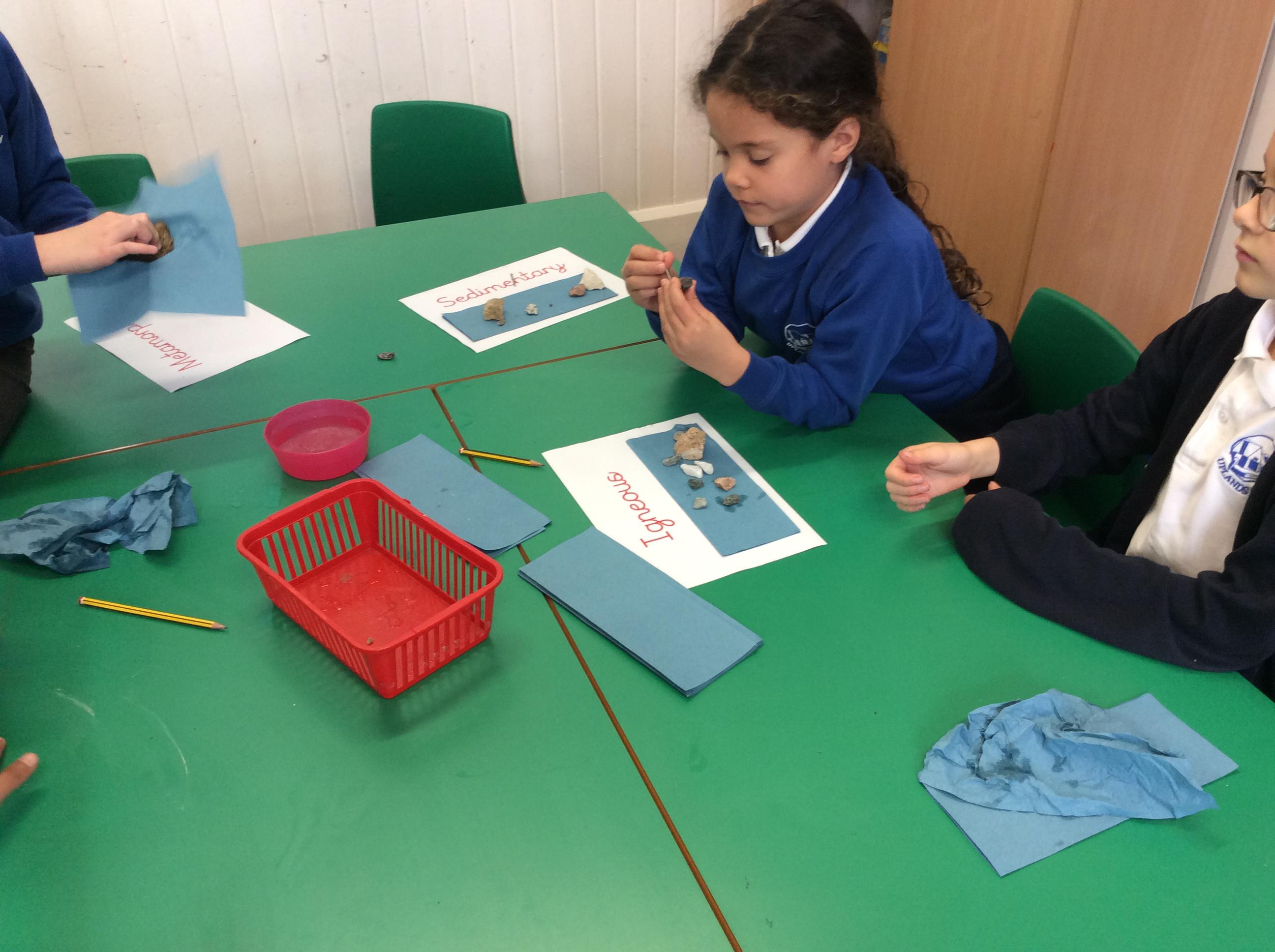 In science, we began to look at different types of rocks and their properties. We then carried out an investigation to discover what changes happen if the rocks are submerged in water.