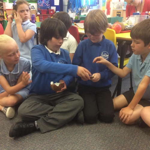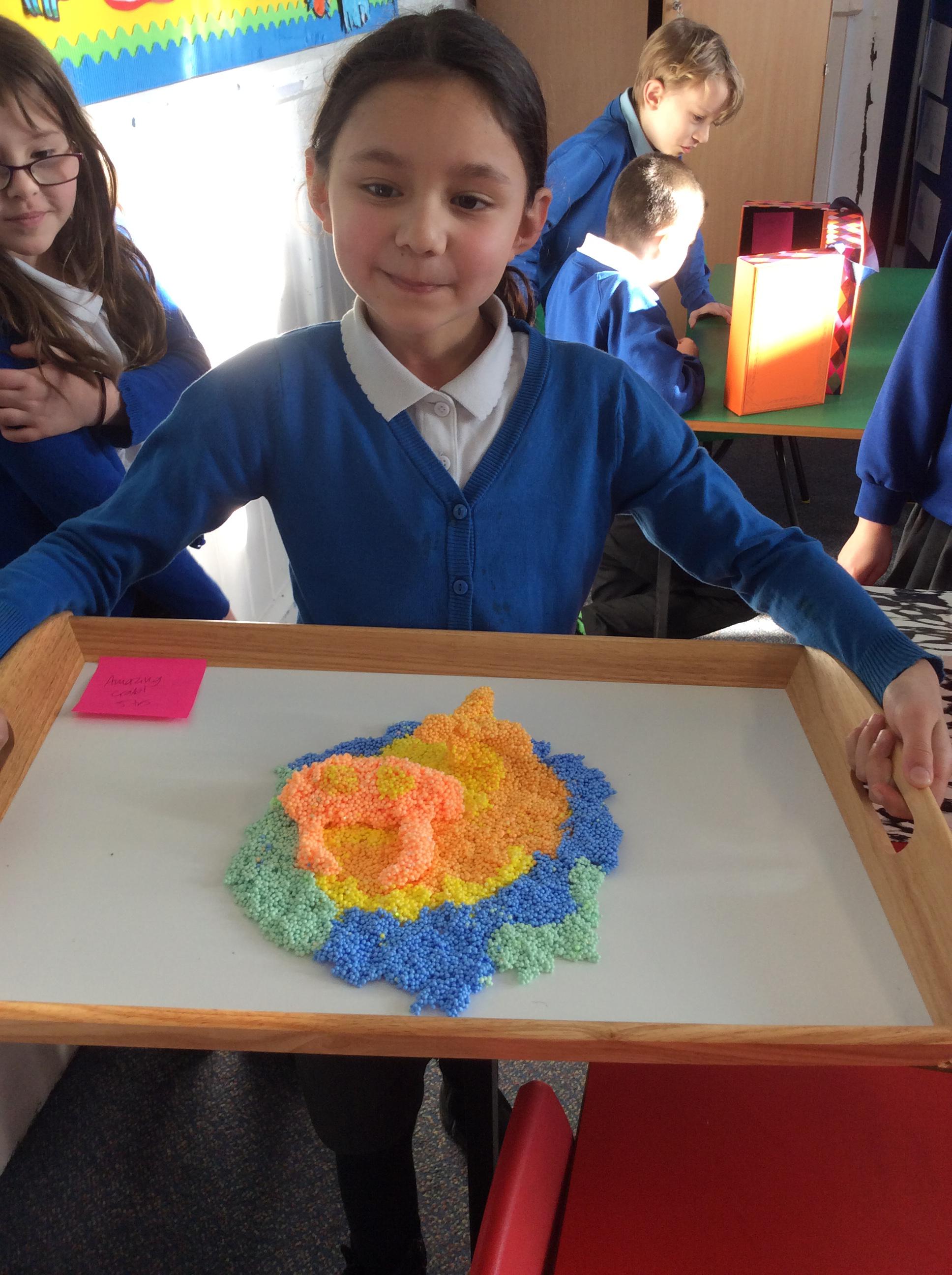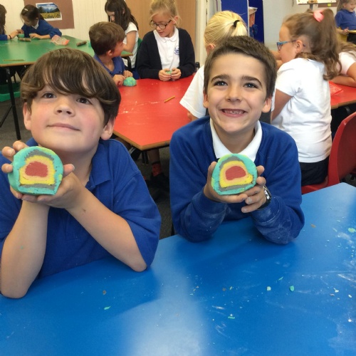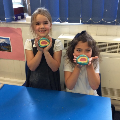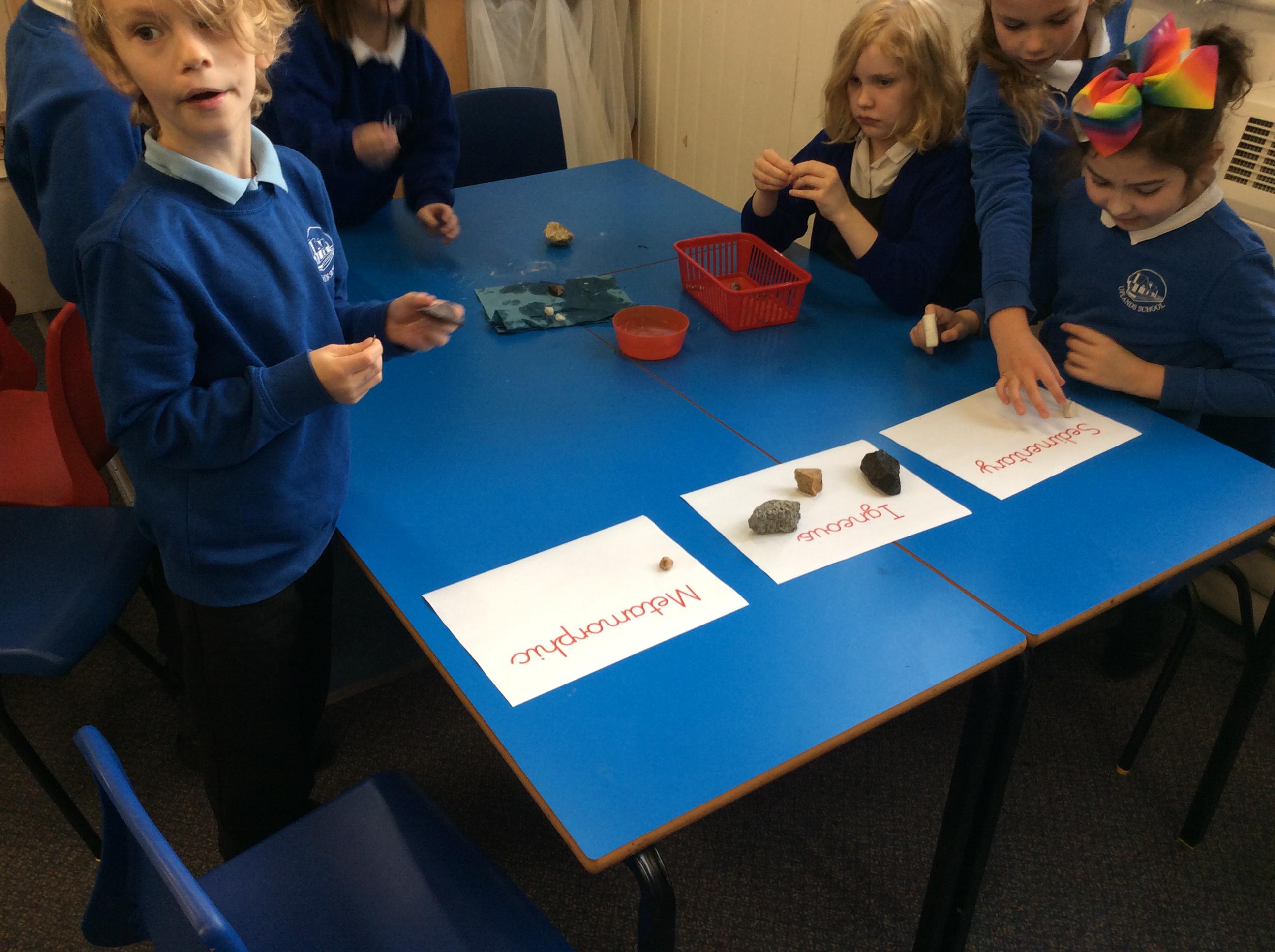 In science, we began to look at different types of rocks and their properties. We then carried out an investigation to discover what changes happen if the rocks are submerged in water.