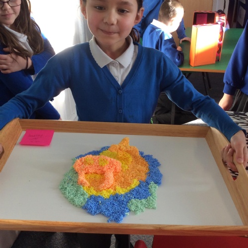 In Science, we have carried out an investigation in groups that looked at whether certain rocks allow water to pass through them and learnt what the word is when this happens(permeable).