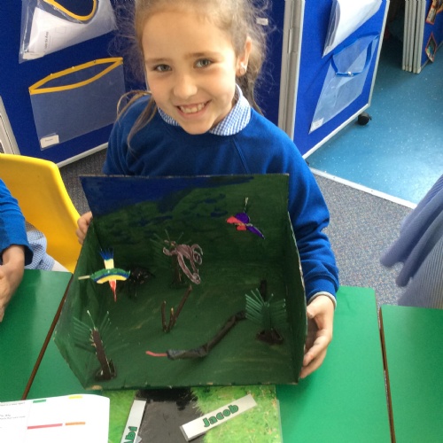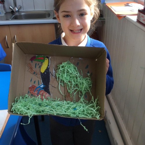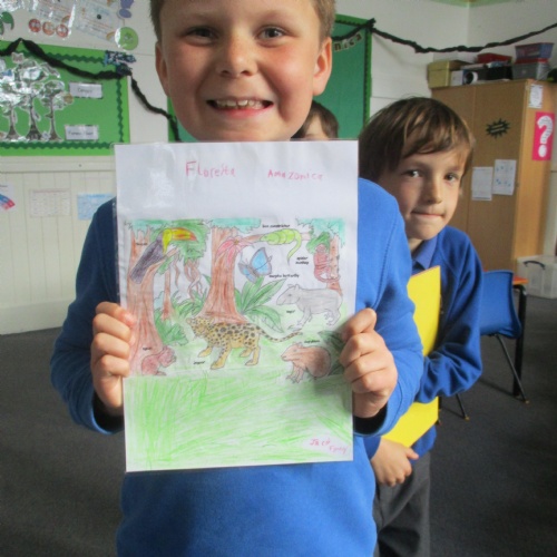 In English, the children were doing some creative writing that was focusing on description and the description was of new creatures that they discovered in the rainforest. We also posted a selection of our letters about palm oil to the supermarkets. Fingers crossed we receive some replies!
