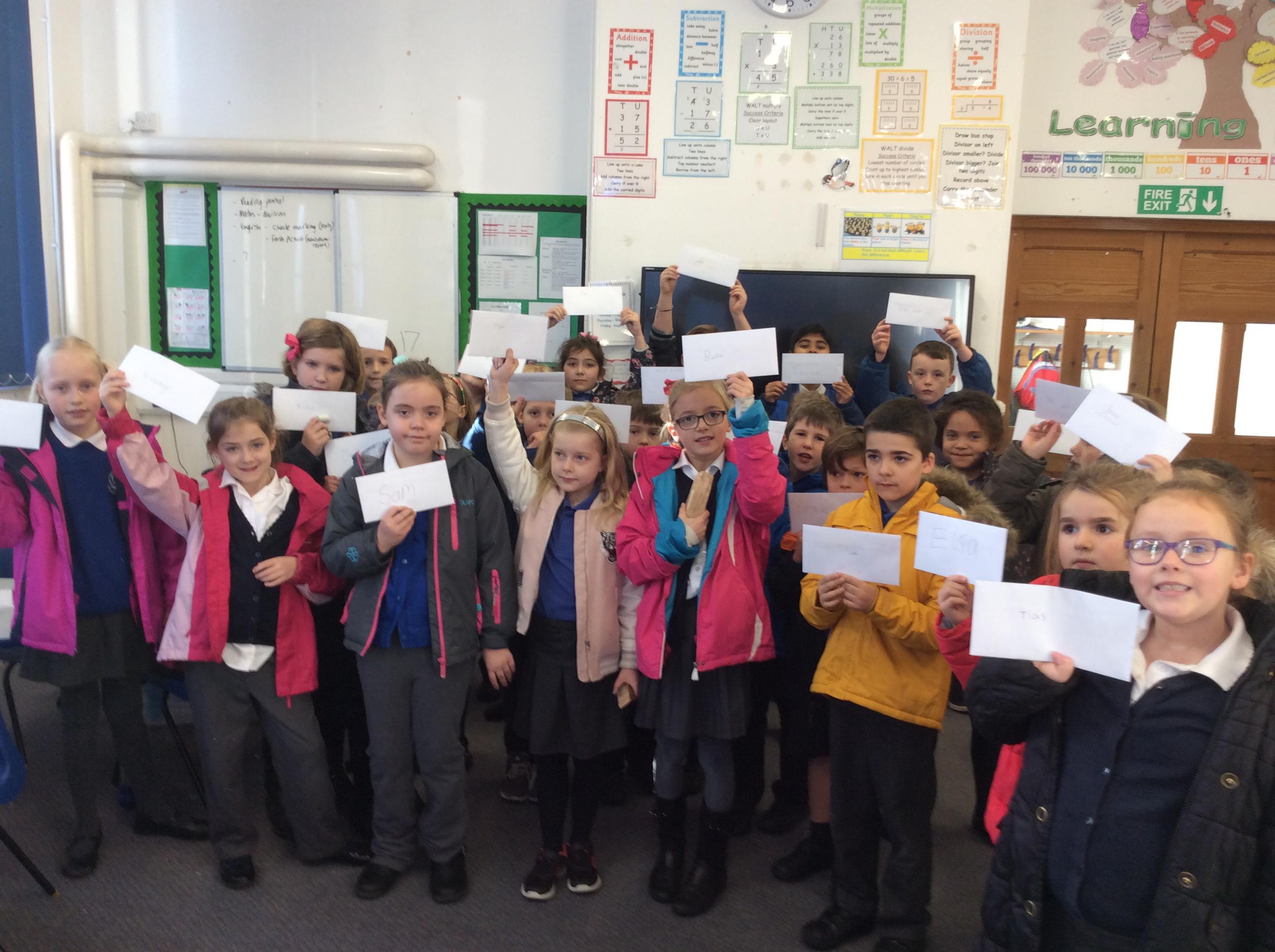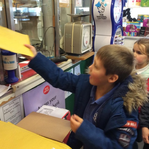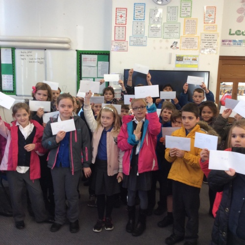 This week we made daffodil Easter cards for our pen pals. We also typed up our riddles from last week to send along with the cards. A few of us got to walk down to the post office to post our package. We also received Easter cards from our pen pals which were lovely!
