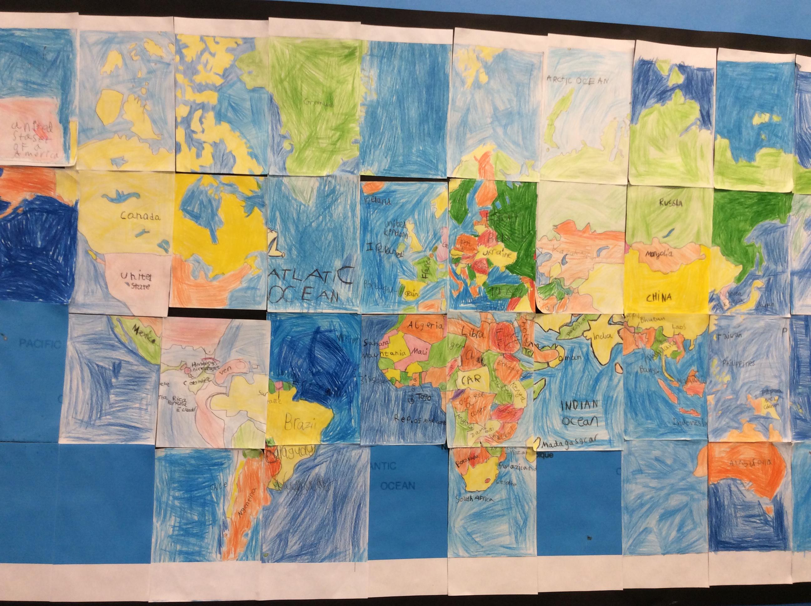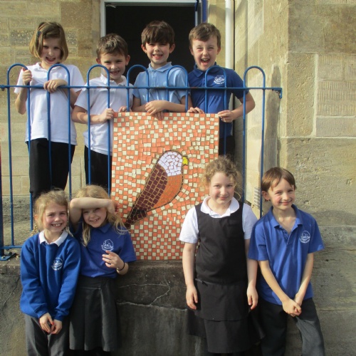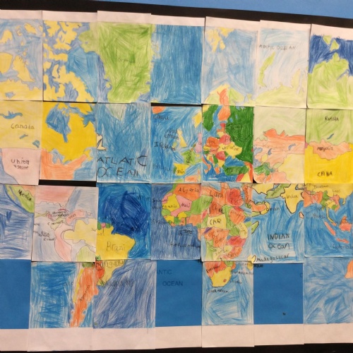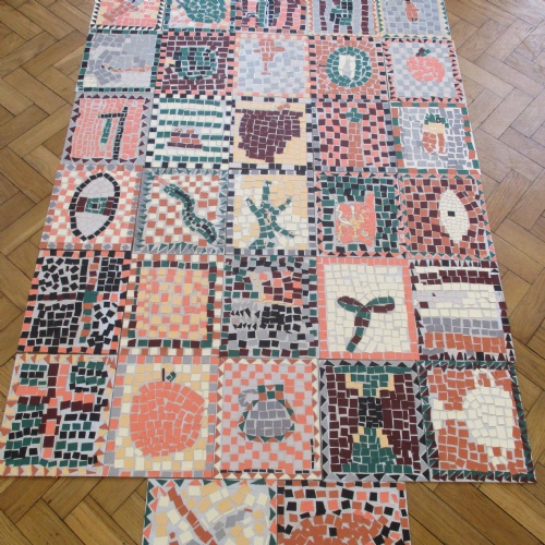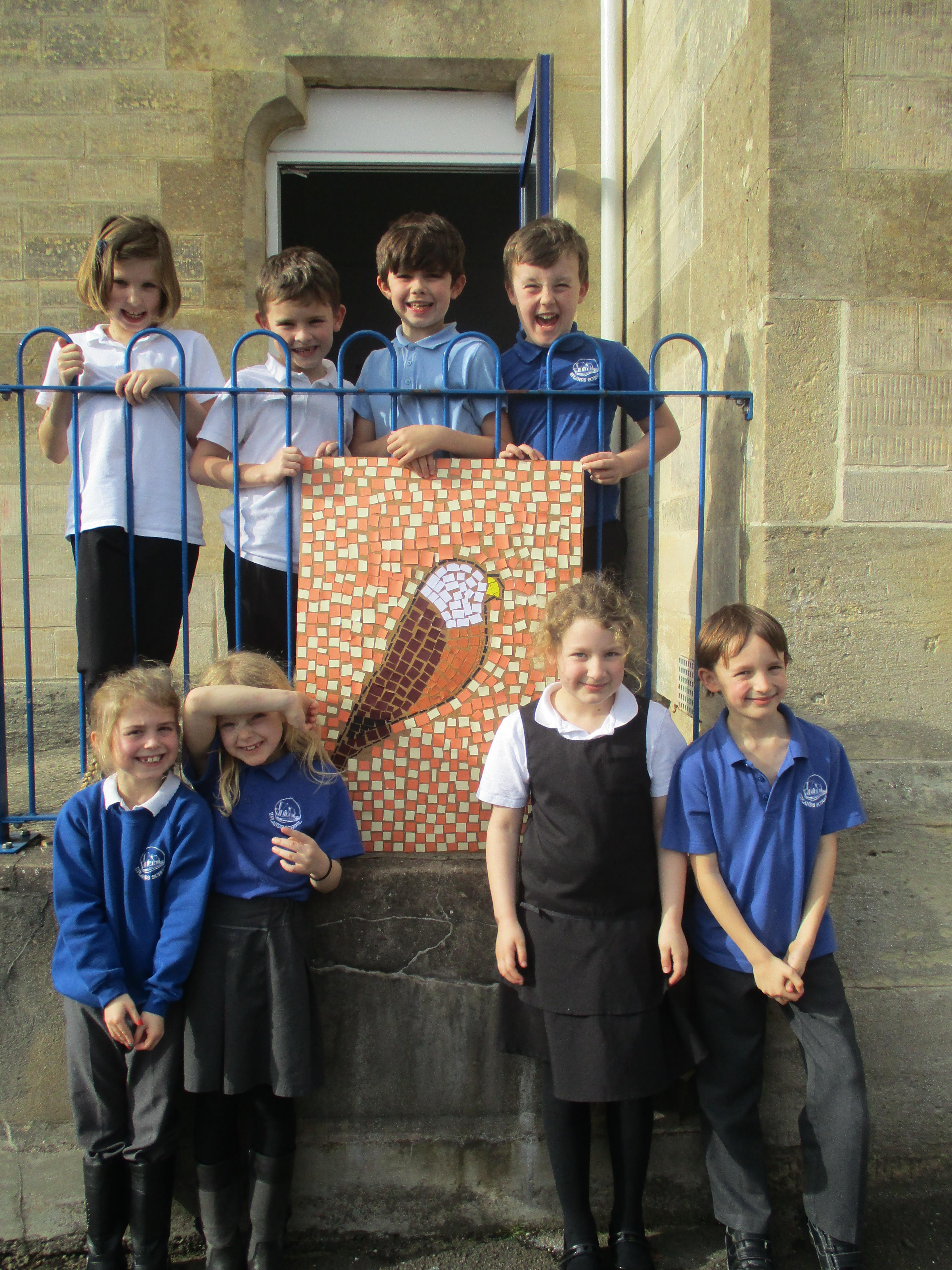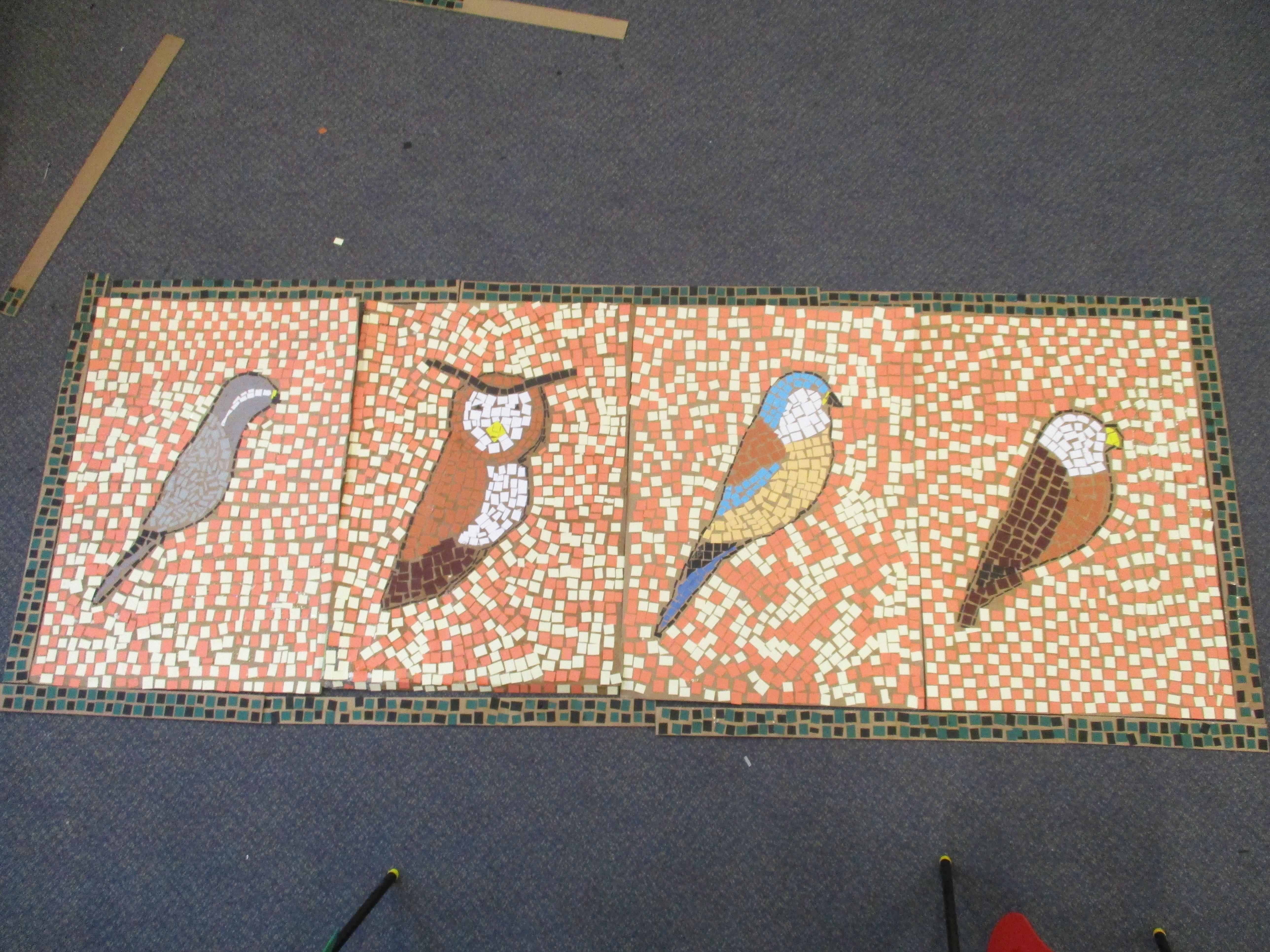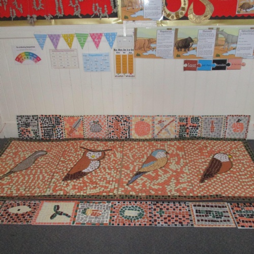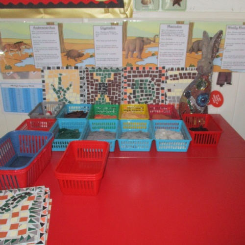 In Art we have been working on creating marvelous mosaics. Today we challenged ourselves to make a whole floor mosaic! Working in teams we persevered and are really proud to share with you