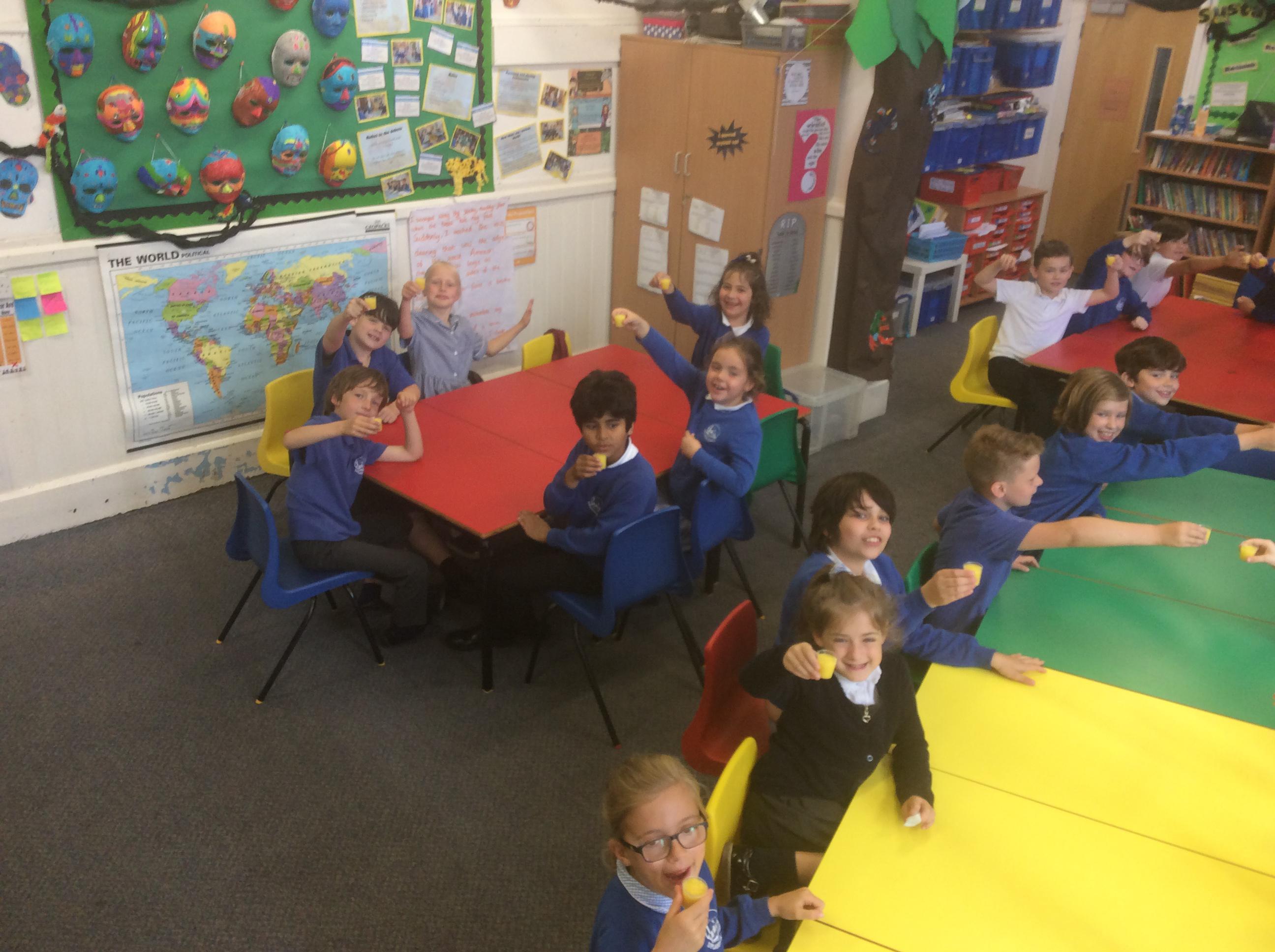 In maths with Miss Dempster, the year 4s learnt how to round to the nearest ten, hundred and thousand, whilst the year 3s continued their work on fractions.