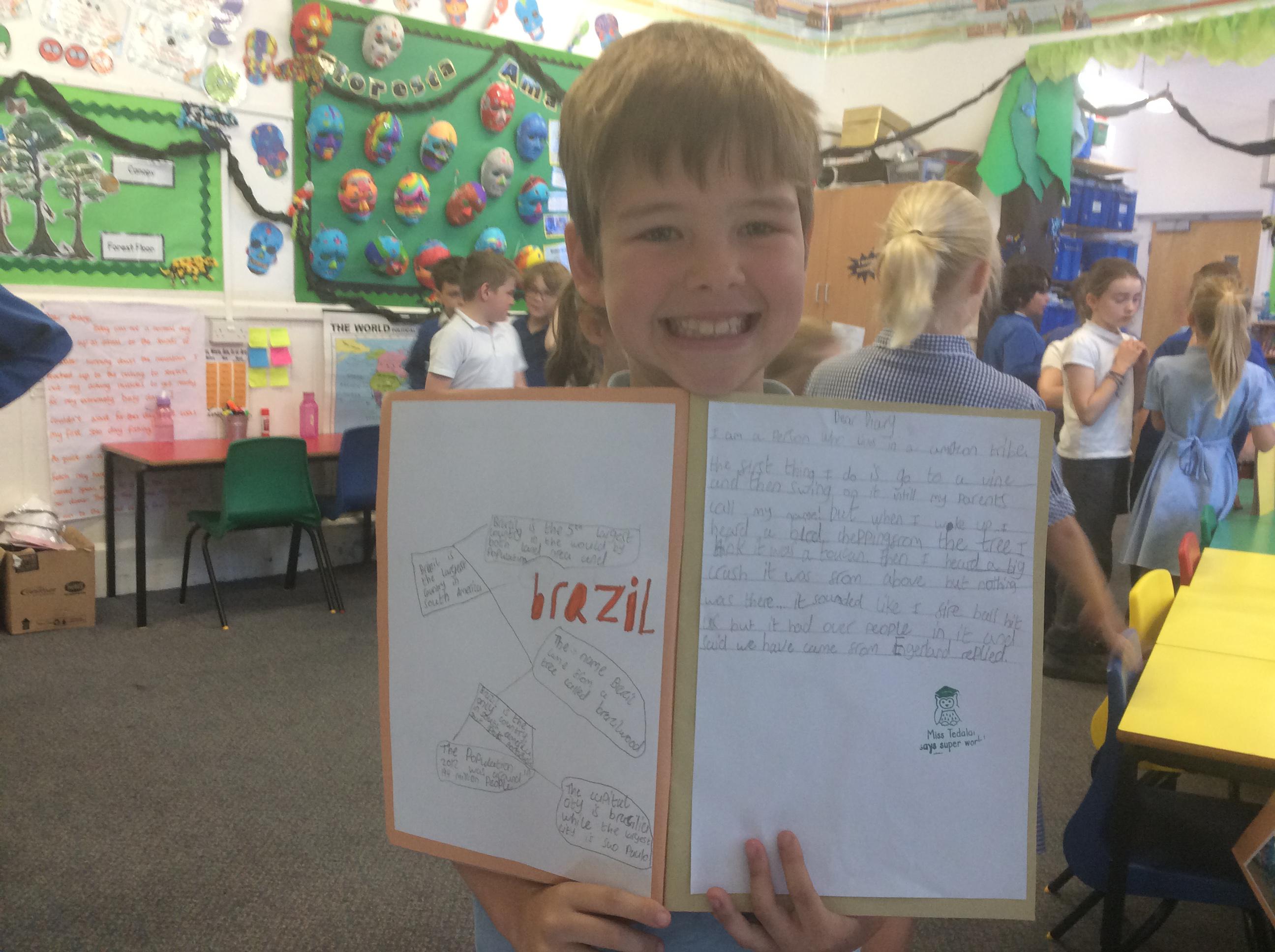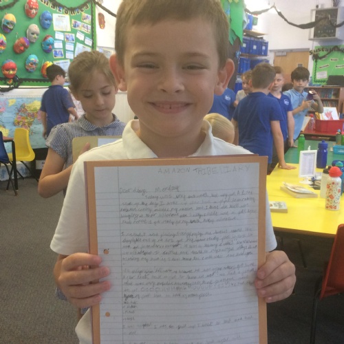 For our topic work this week with Mr Moorcroft, we wrote a diary about the journey of a fruit from the Amazon that arrives in a supermarket in England and we enjoyed trying to think and feel what it would be like to be the fruit.
