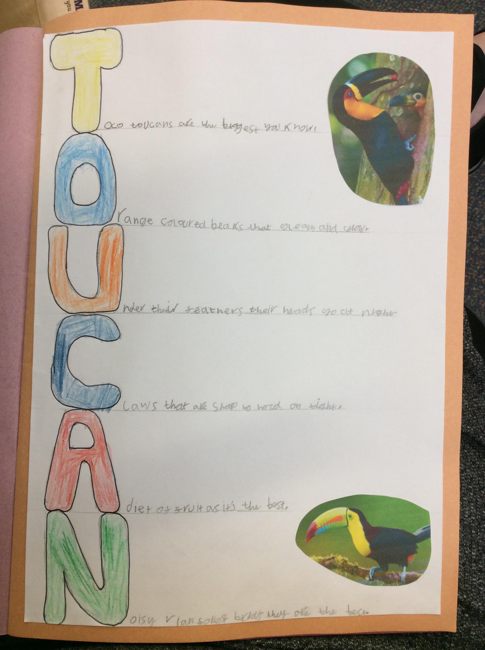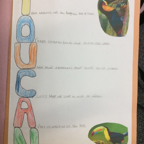 At the beginning of the week we were editing our brilliant stories that we had written the week before. After that we started to look at riddles and began to write some of our own about rainforest animals and we will be sending these to our pen pals when they are complete.