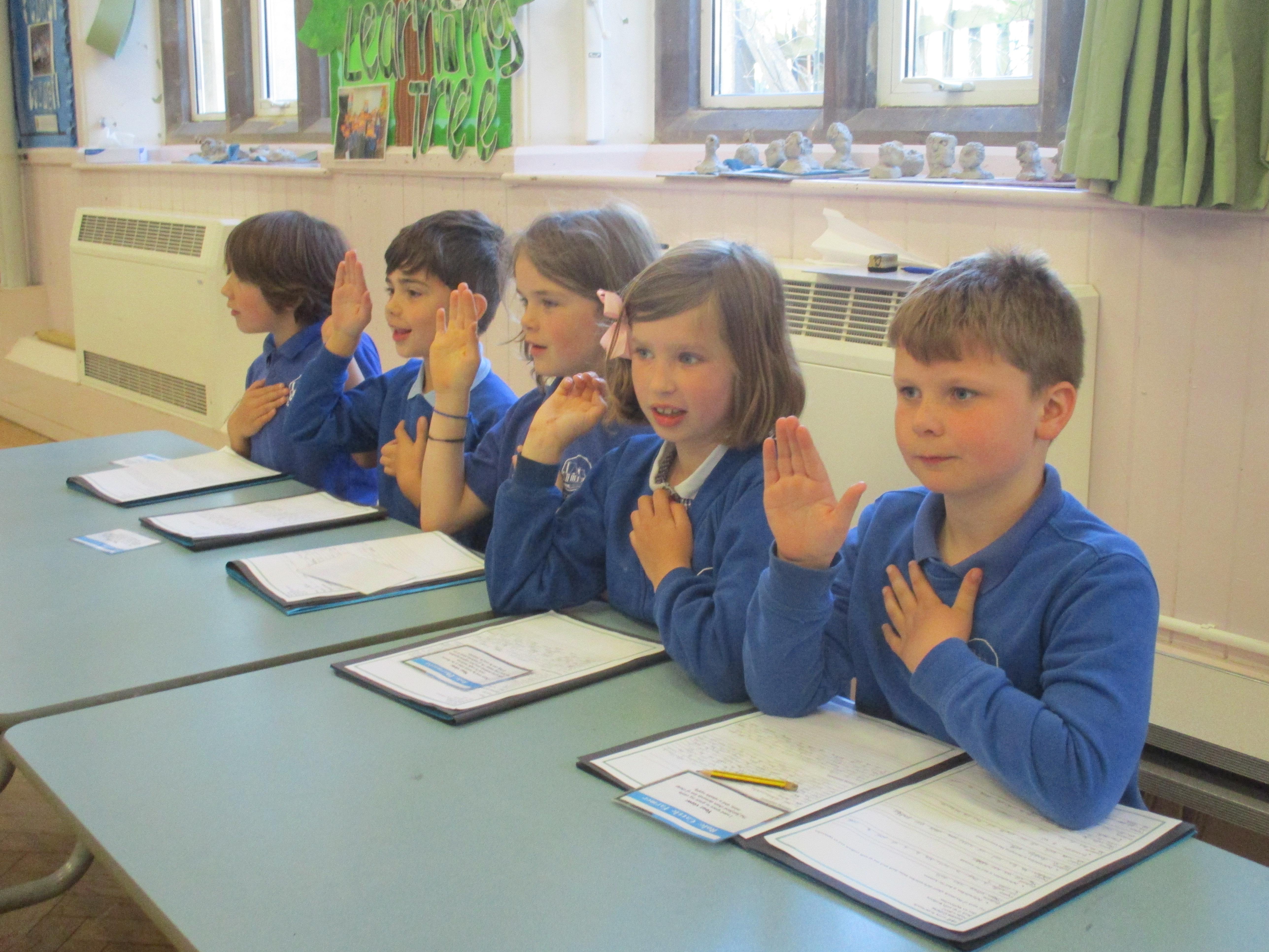 We held secret ballots in our classroom and posted our cards into the ballot box. All the votes were counted and the winner was....