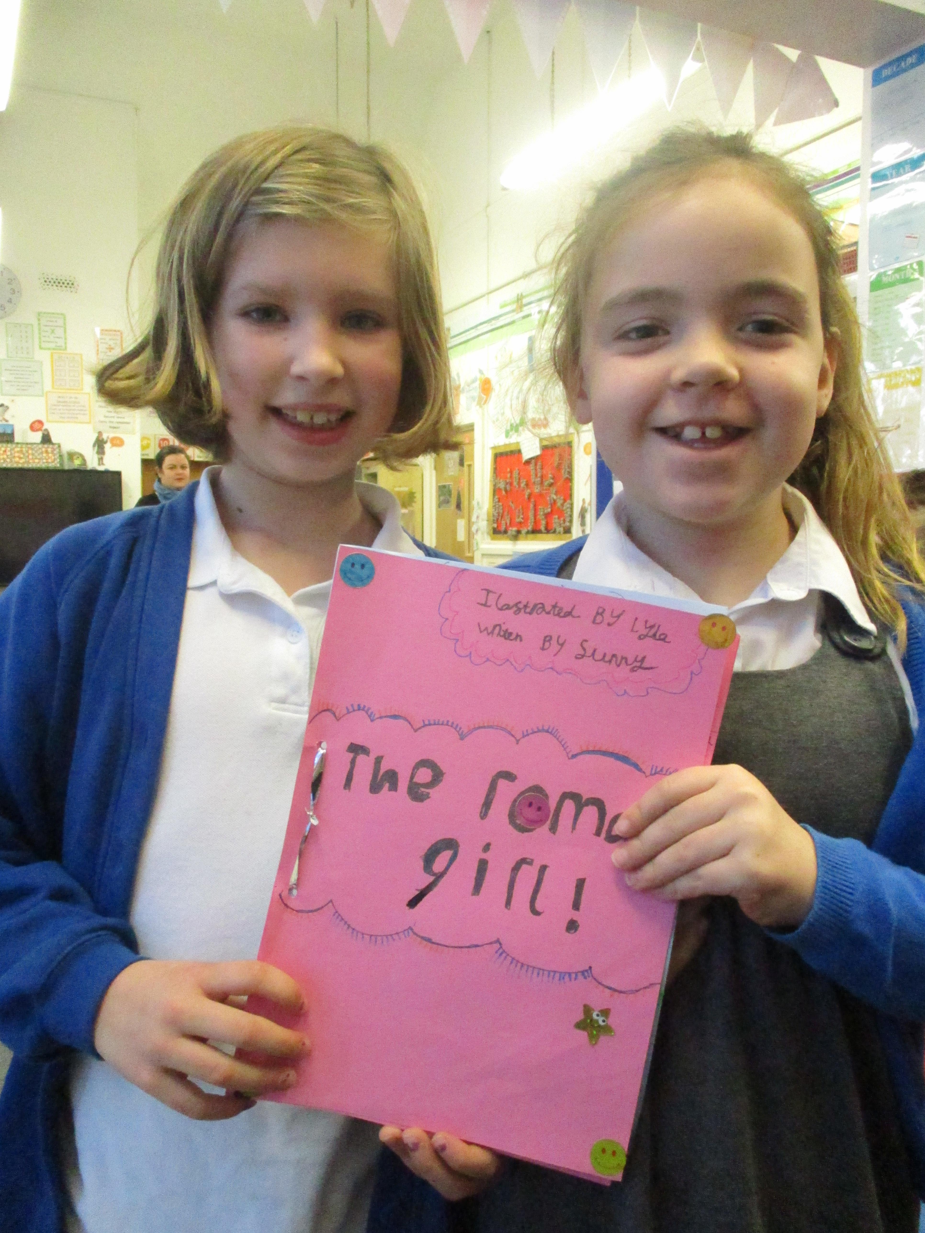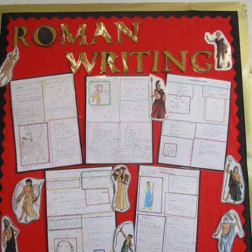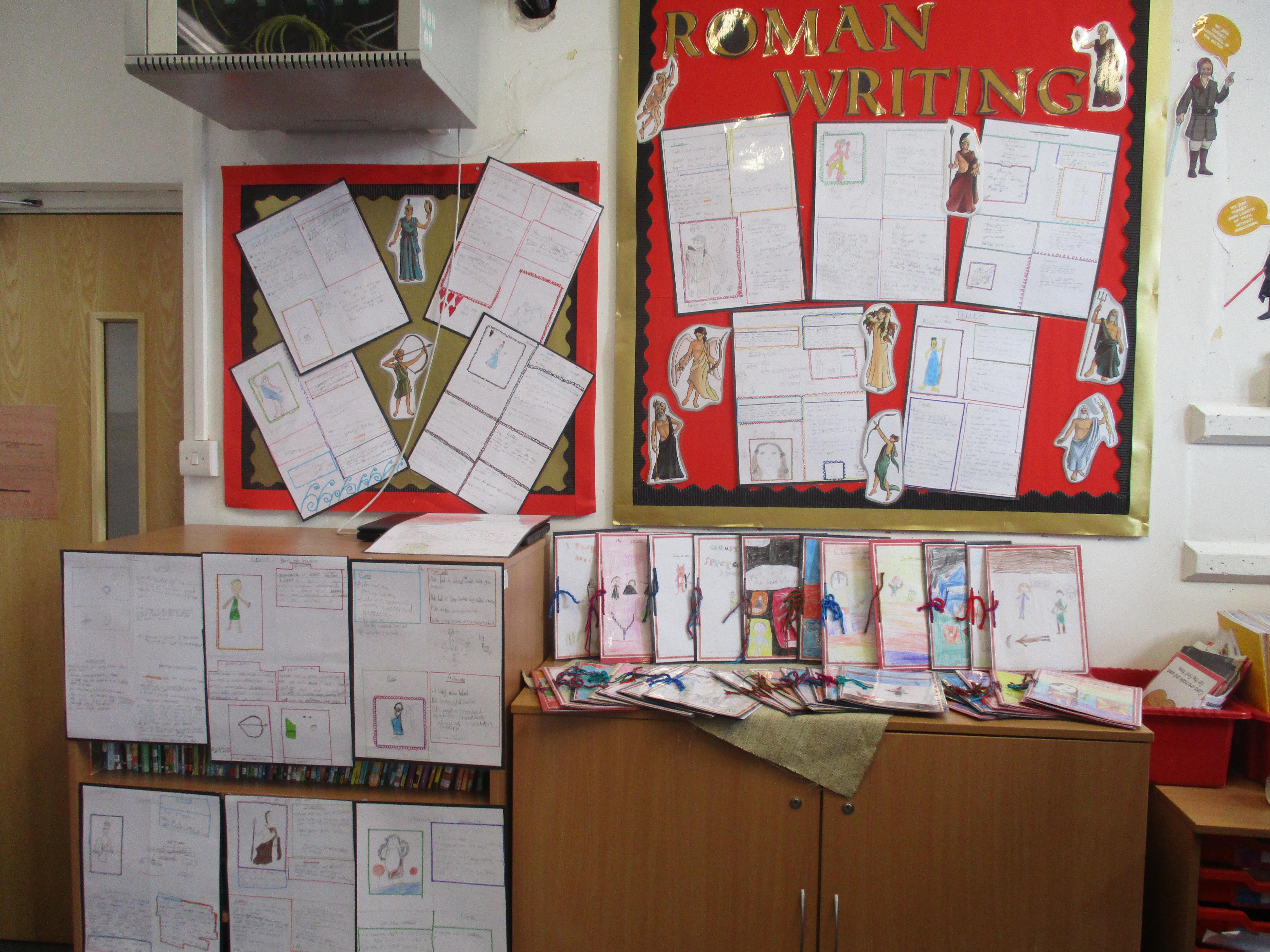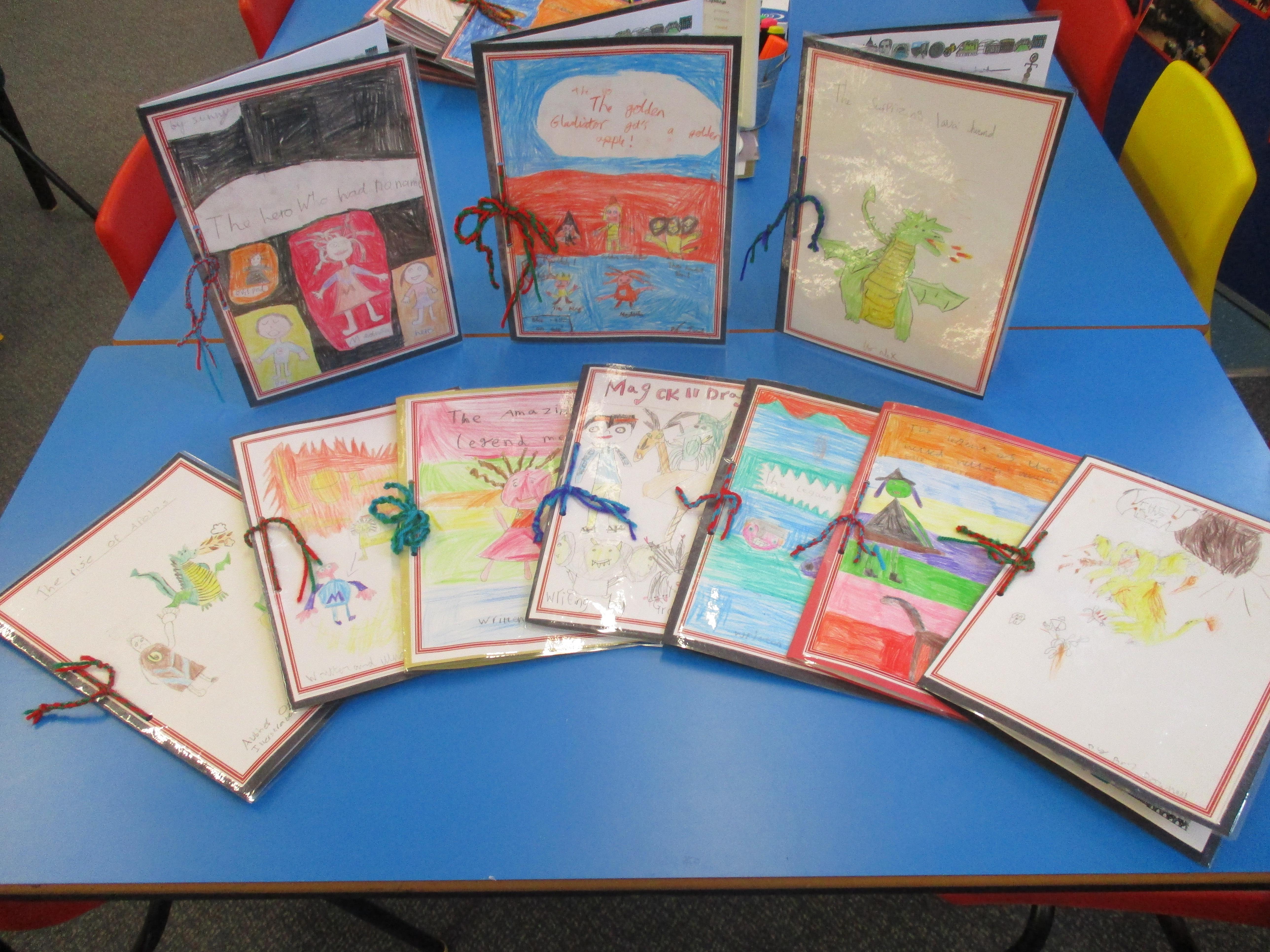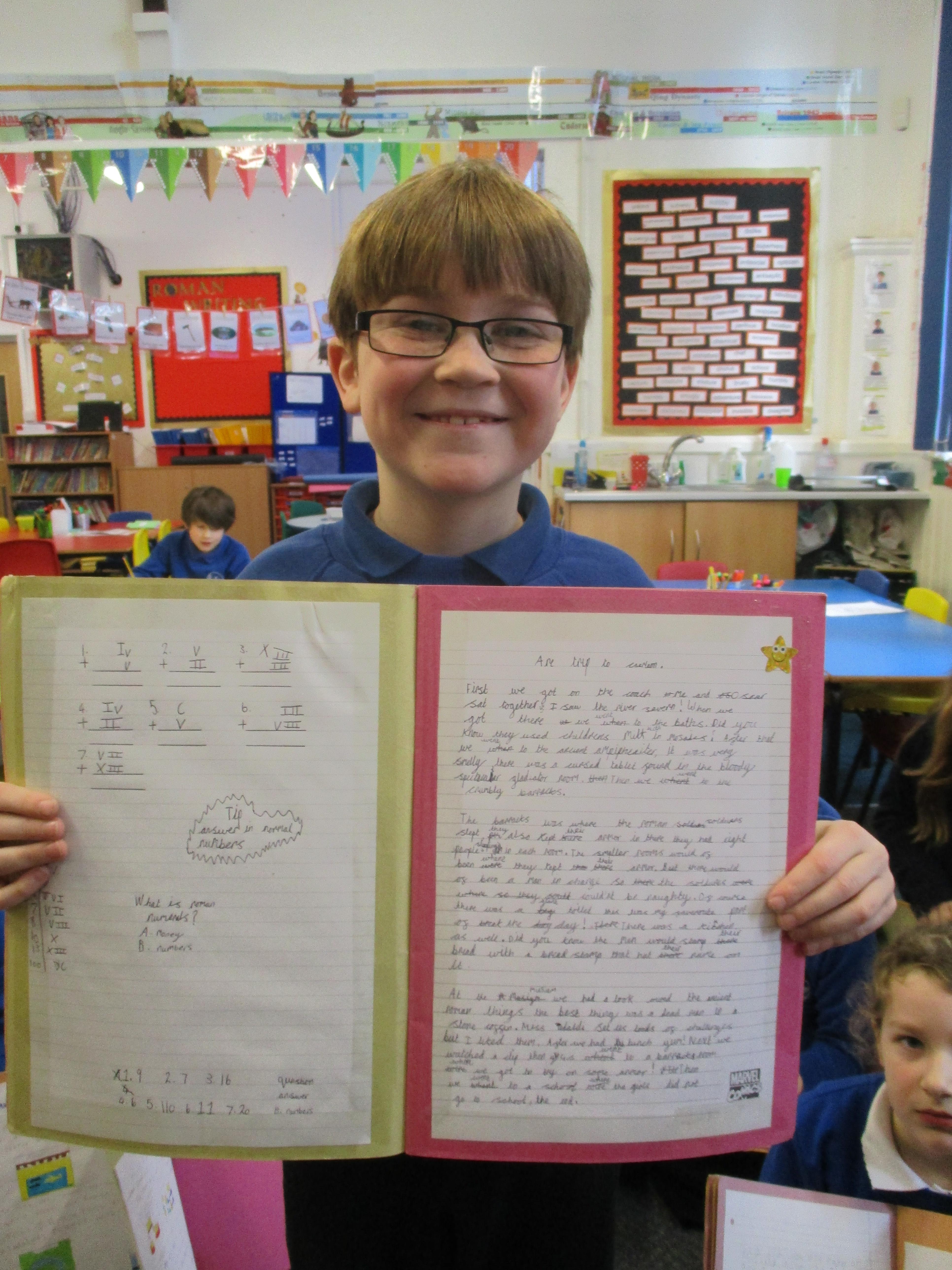 Today we have been in our writing workshop. All of us have written a full story, that's right, a whole story! From beginning to end we have told tales of Roman legends. Our classroom has been full of three headed lions, wicked witches, glorious gladiators and supreme soldiers. We will be making a proper story book with front covers and blurbs.