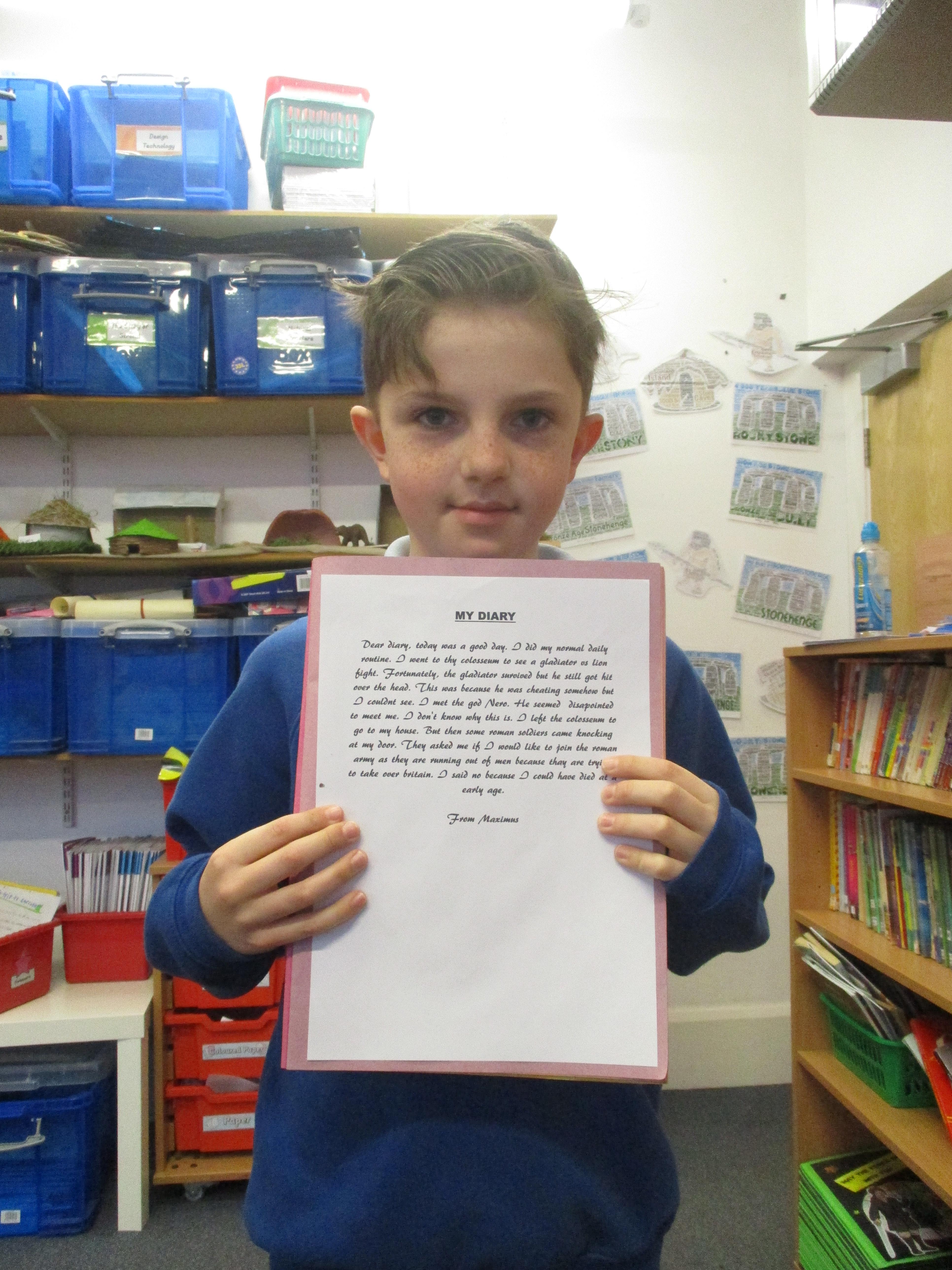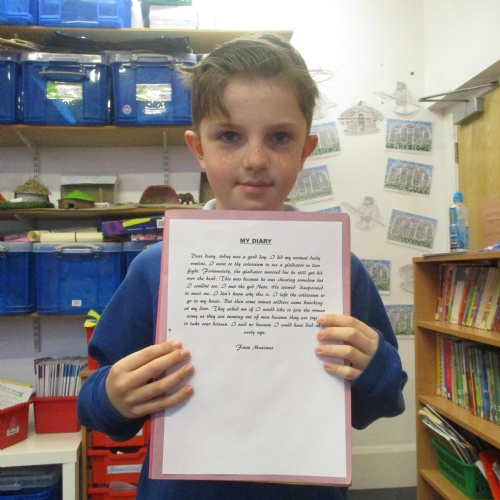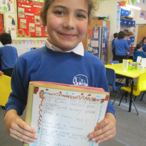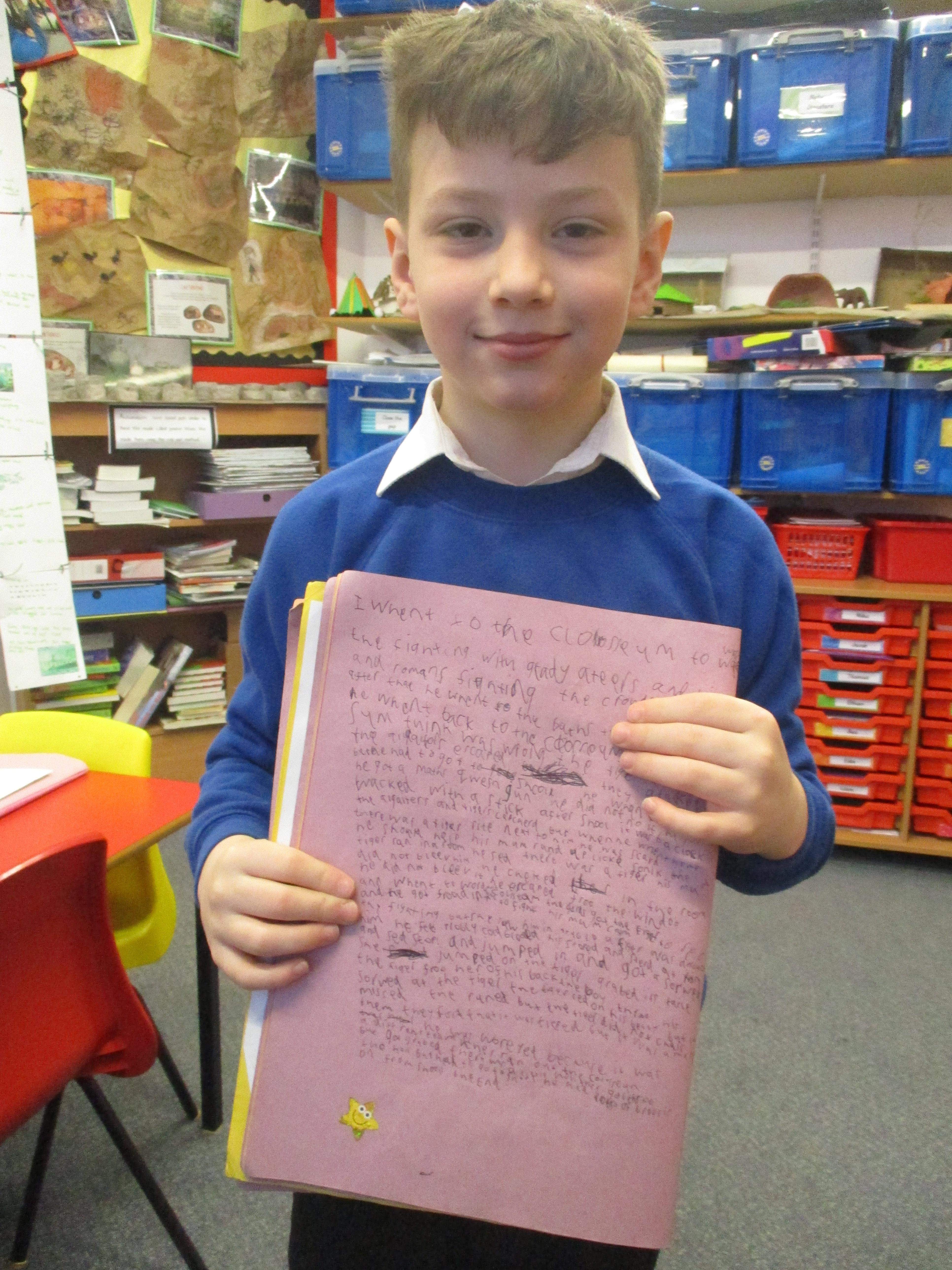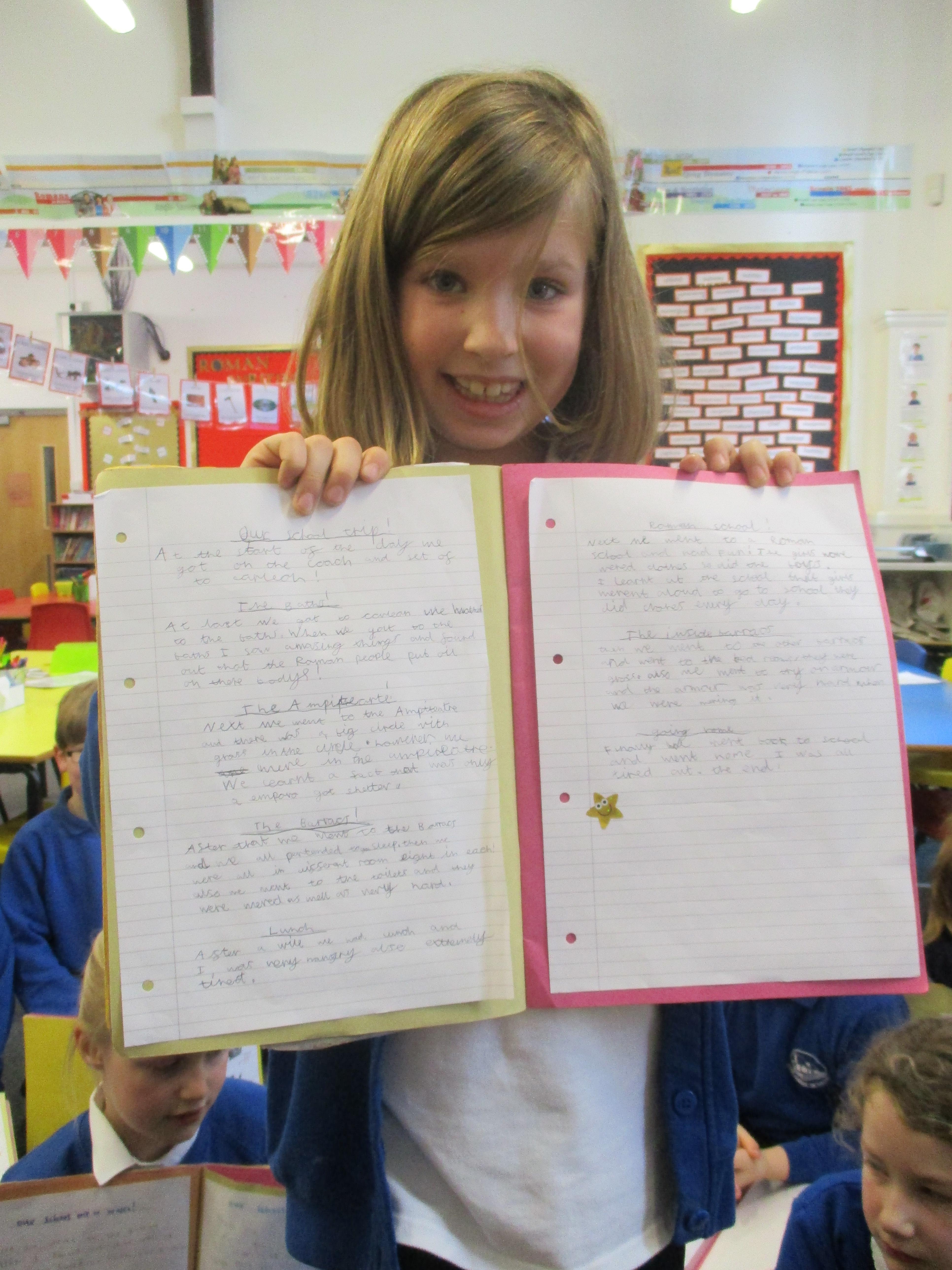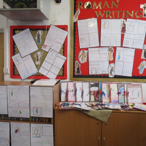 Today we have been in our writing workshop. All of us have written a full story, that's right, a whole story! From beginning to end we have told tales of Roman legends. Our classroom has been full of three headed lions, wicked witches, glorious gladiators and supreme soldiers. We will be making a proper story book with front covers and blurbs.