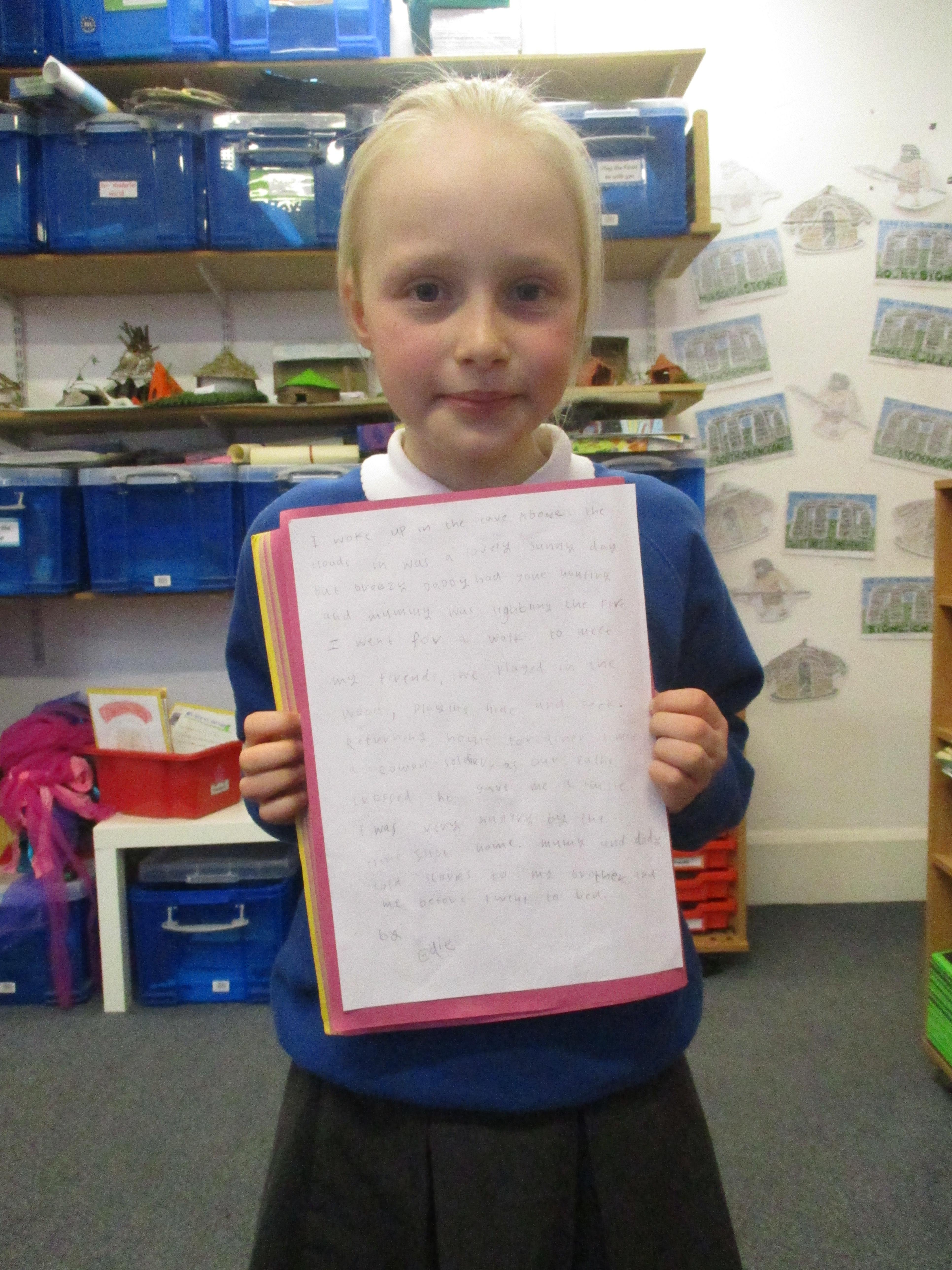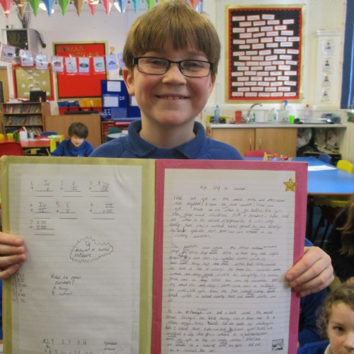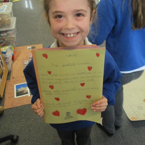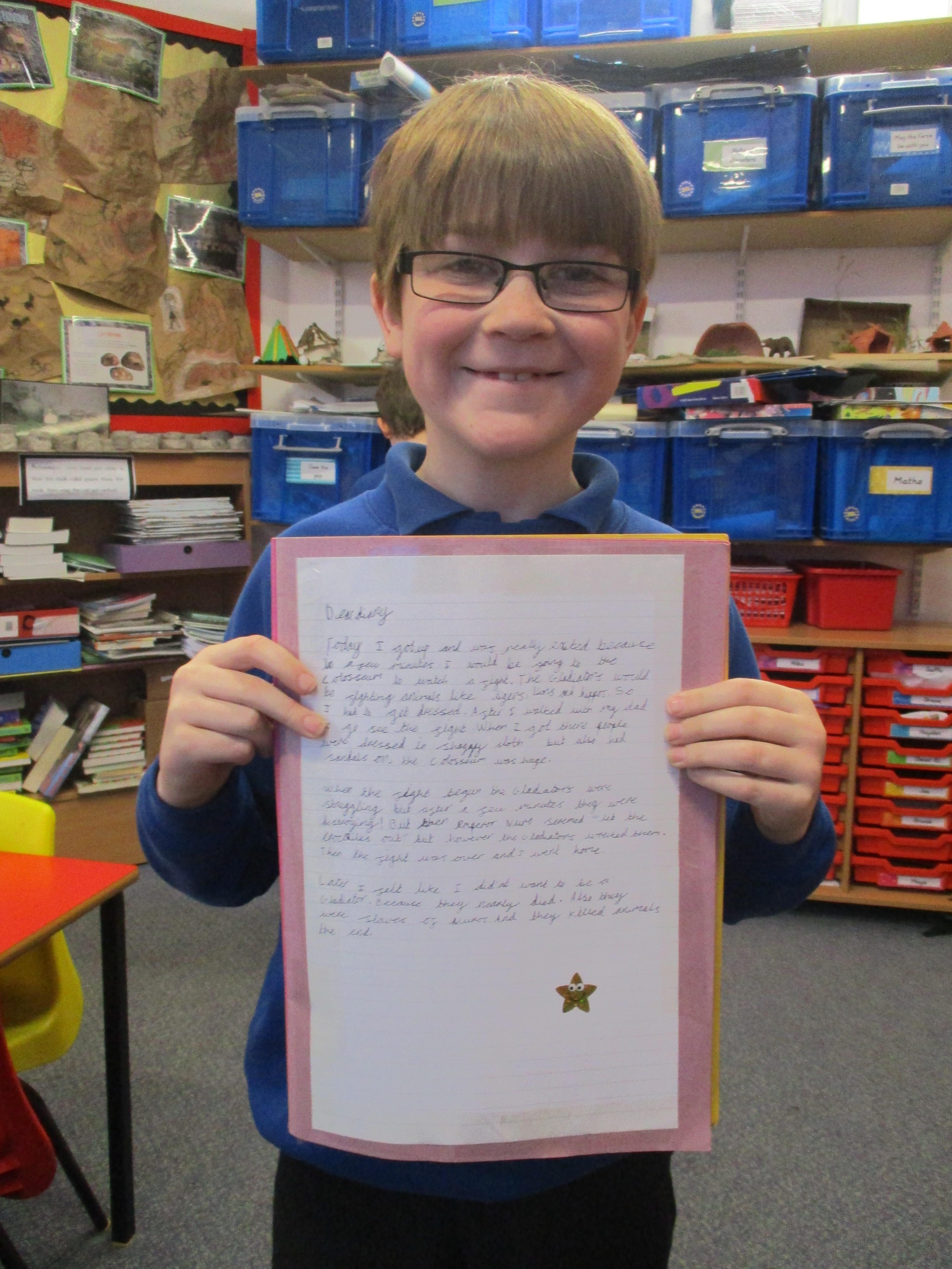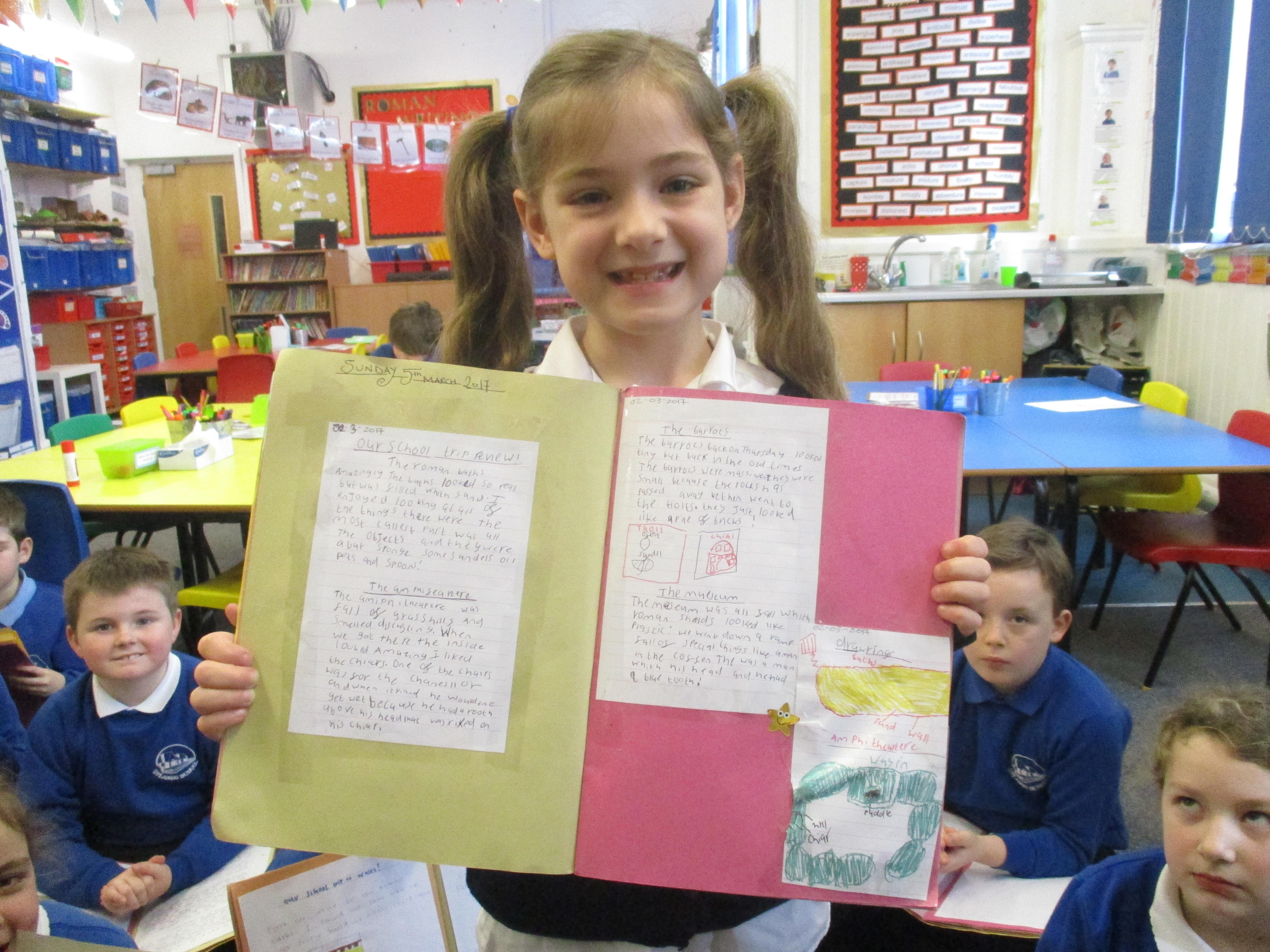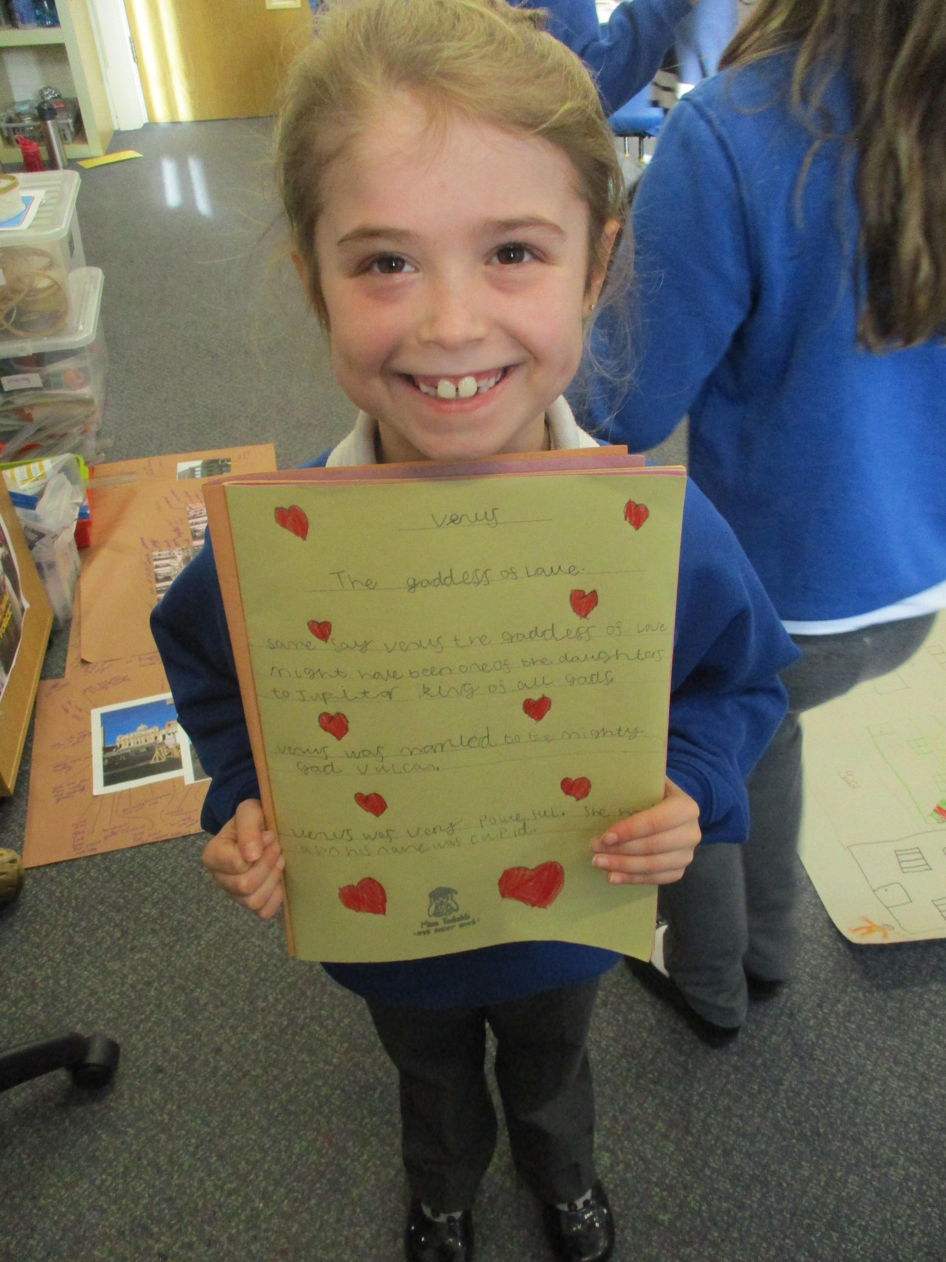 Today we have been in our writing workshop. All of us have written a full story, that's right, a whole story! From beginning to end we have told tales of Roman legends. Our classroom has been full of three headed lions, wicked witches, glorious gladiators and supreme soldiers. We will be making a proper story book with front covers and blurbs.