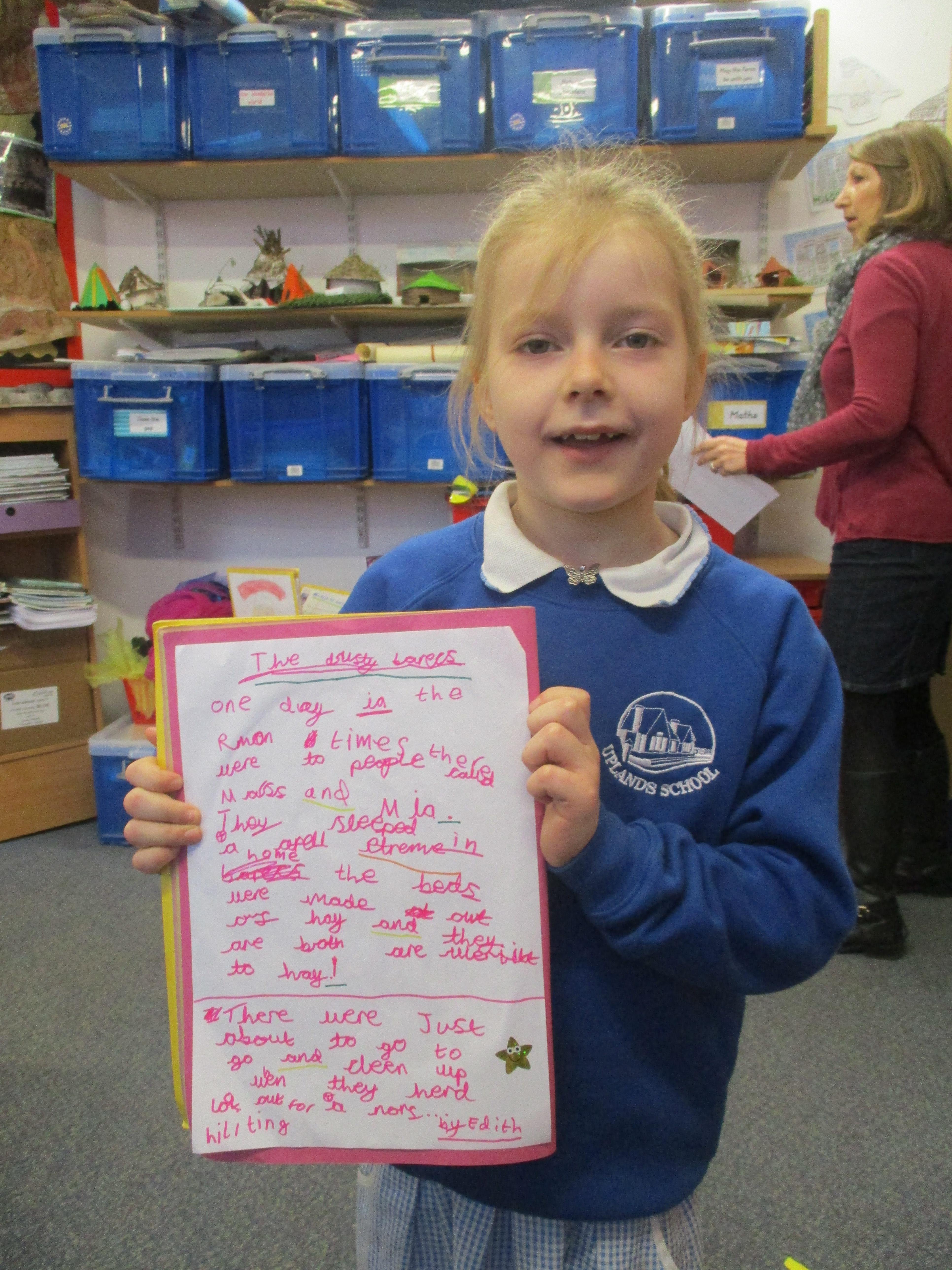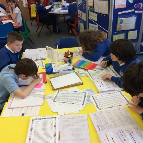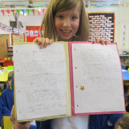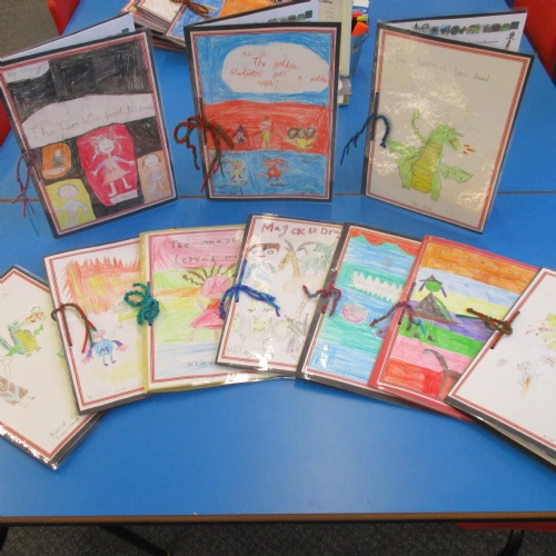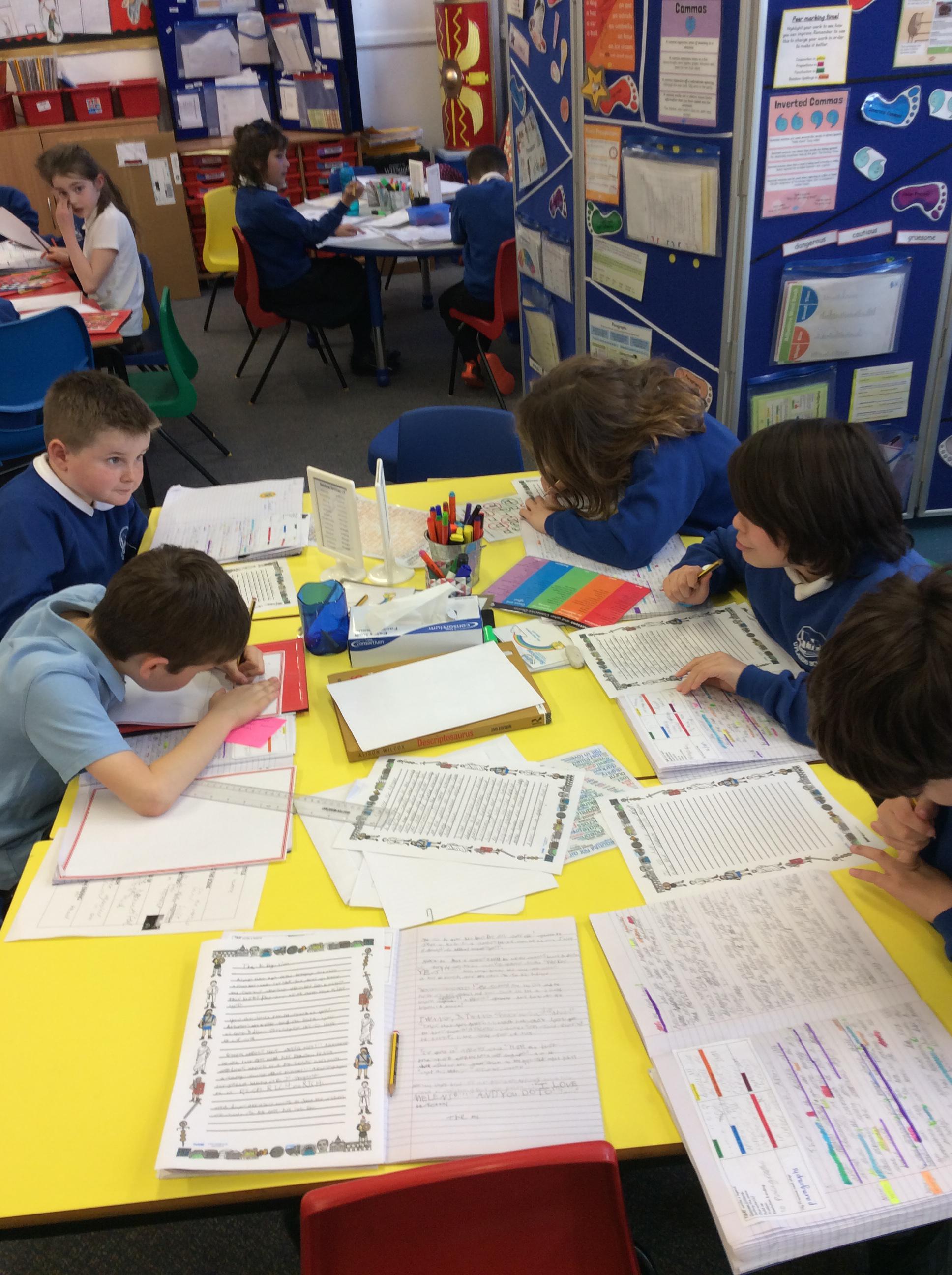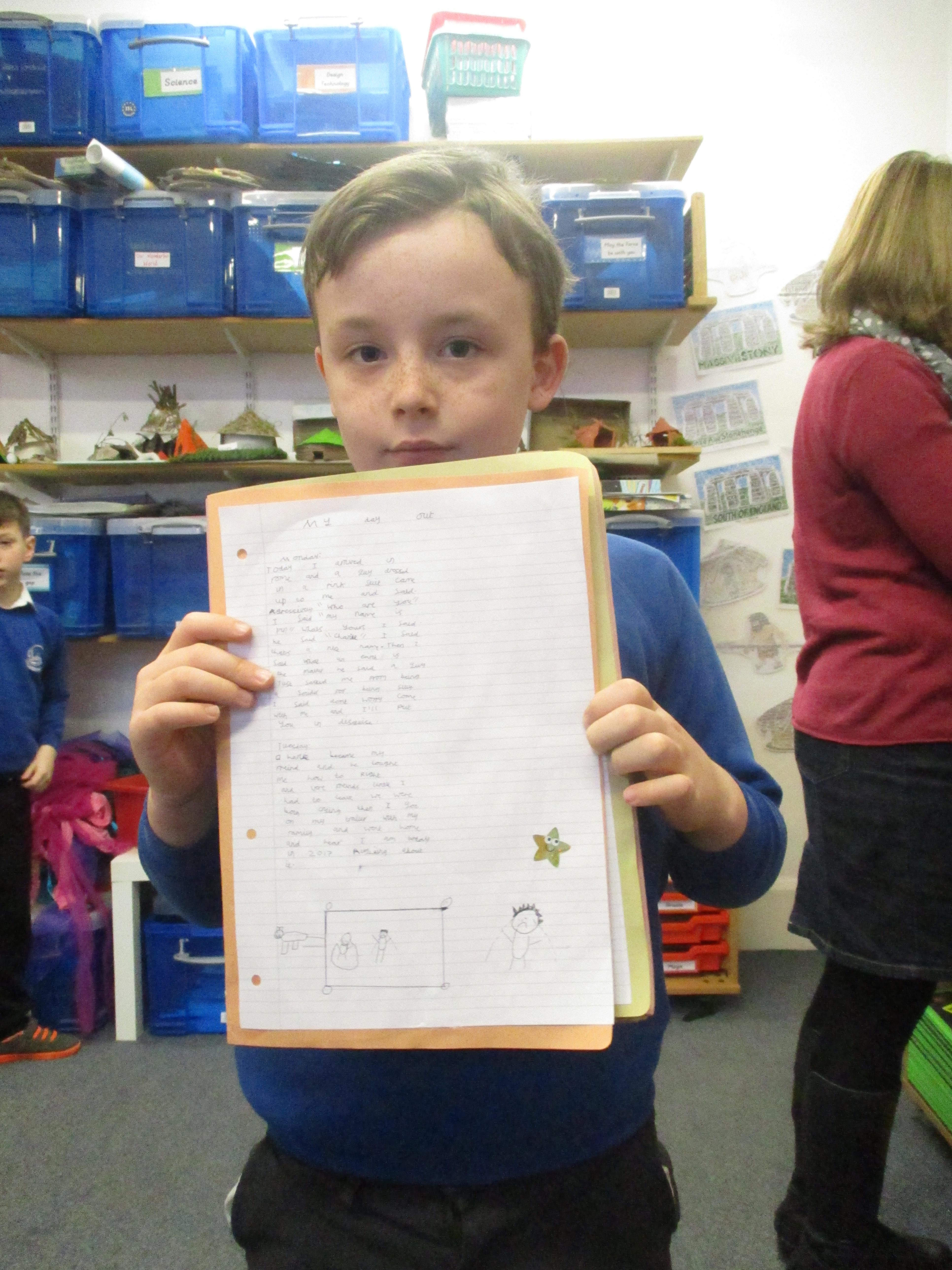 Today we have been in our writing workshop. All of us have written a full story, that's right, a whole story! From beginning to end we have told tales of Roman legends. Our classroom has been full of three headed lions, wicked witches, glorious gladiators and supreme soldiers. We will be making a proper story book with front covers and blurbs.