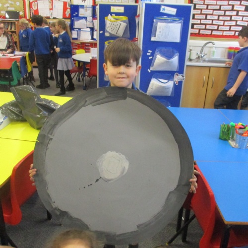 Later in the week we started recapping time with Mr Moorcroft in Maths and we had our first PE lesson (athletics) of the week with Mrs Knight. Continuing on with making things for our topic display we had the chance in pairs to look at weapons and tools that were used in the Stone Age and we then designed and created them with some of them then being used to put on our display.