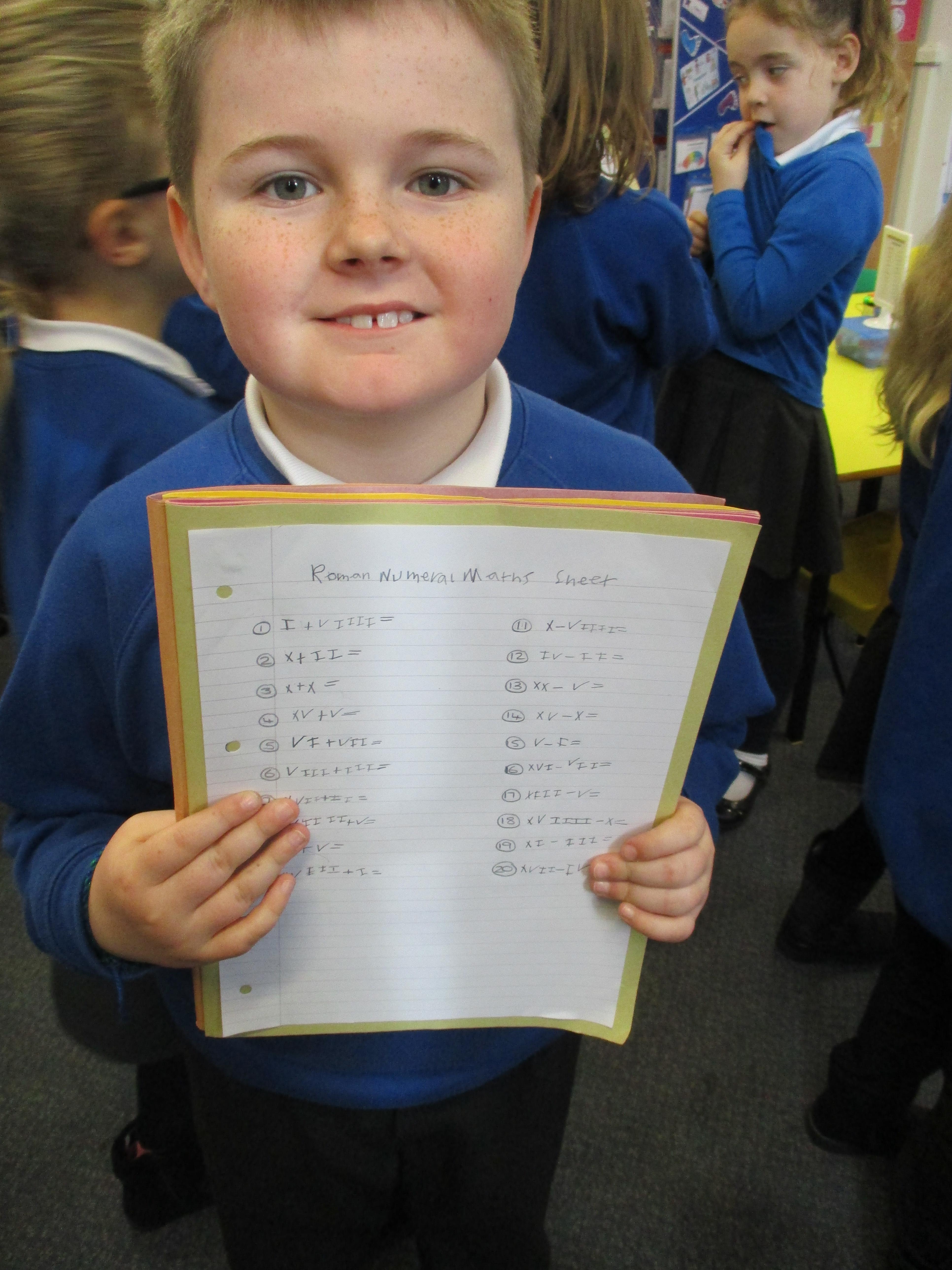 Our homework this week was to create a Roman Numerals maths challenge for our Museum! Check out some of the photos.