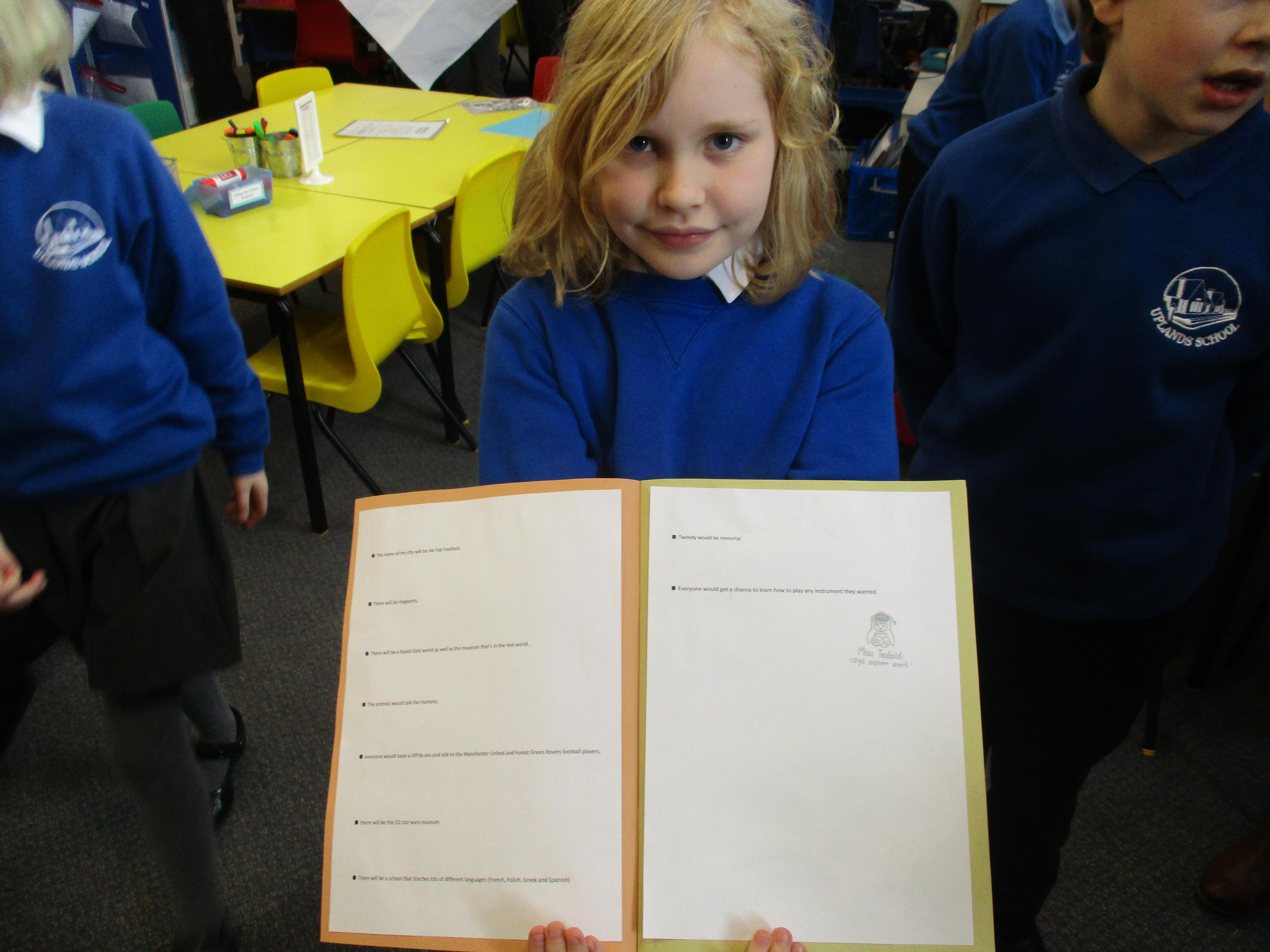 First was based on our work on the story of Romulus and Remus. In the story they created their own city which later became the city of Rome. We had to imagine we could create our own city. What would it be called? Give it a name and state 8 things that would be special about our city.